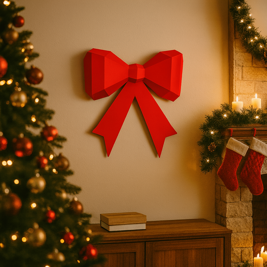 Un grand nœud ruban au style low-poly pour une touche festive et moderne.