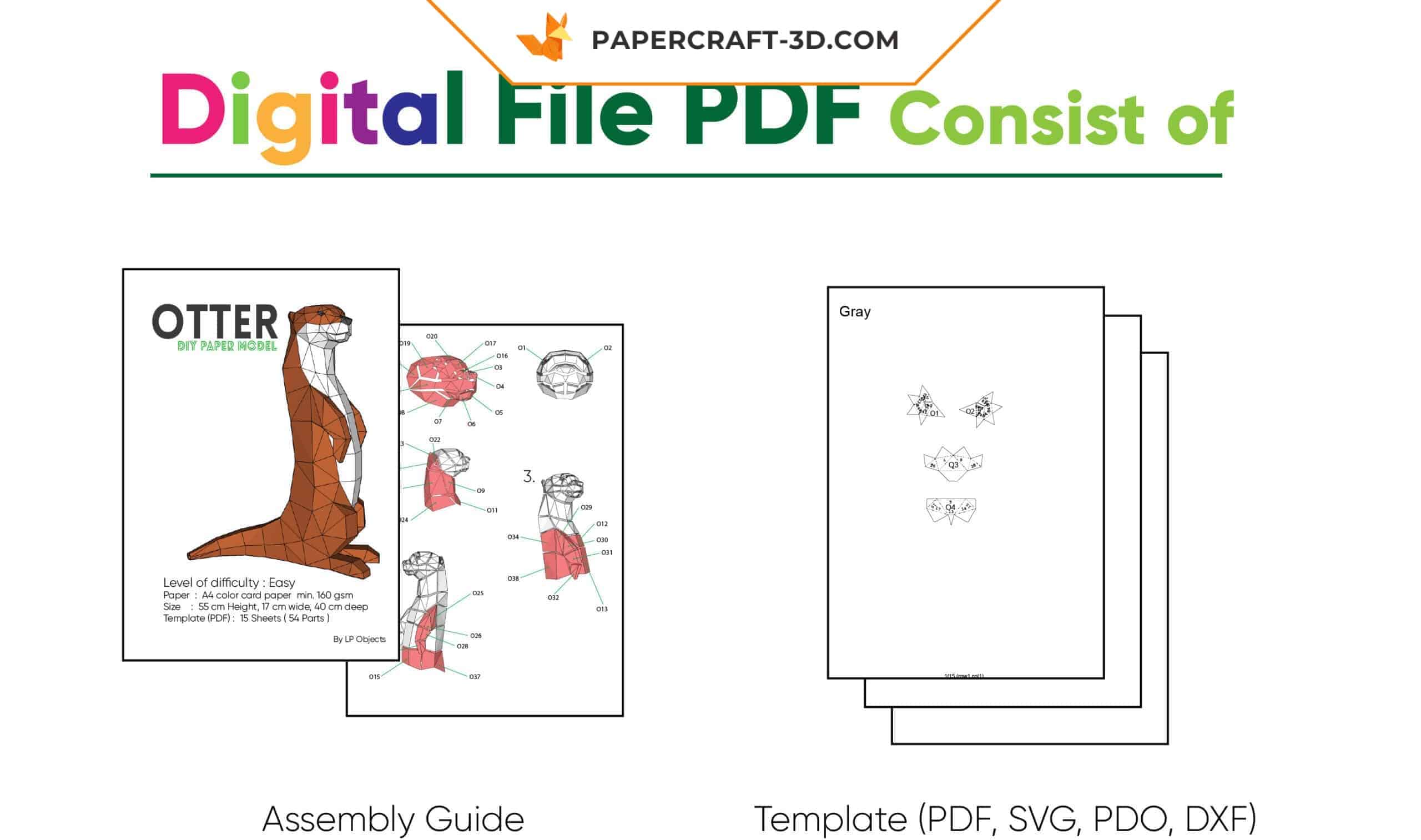 3D Origami Papercraft Otter: Digitales Kit oder komplette Box