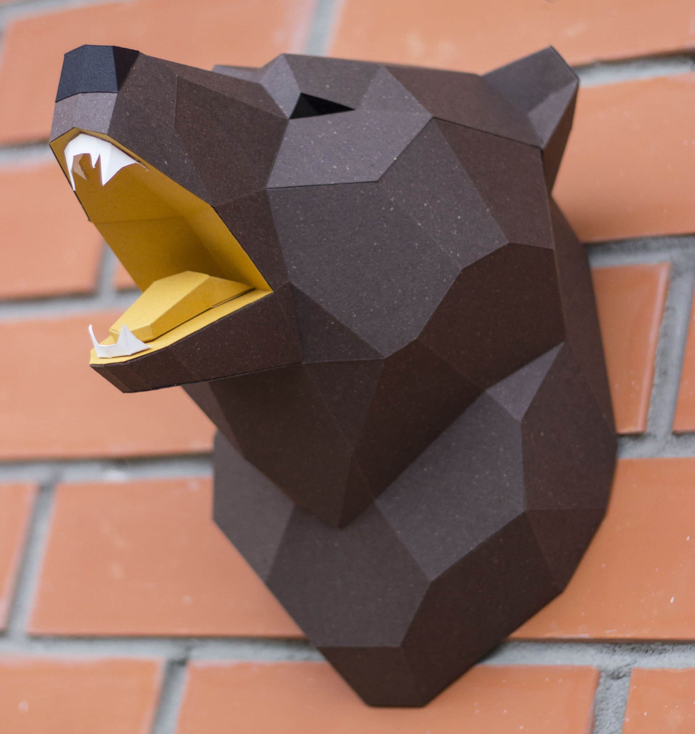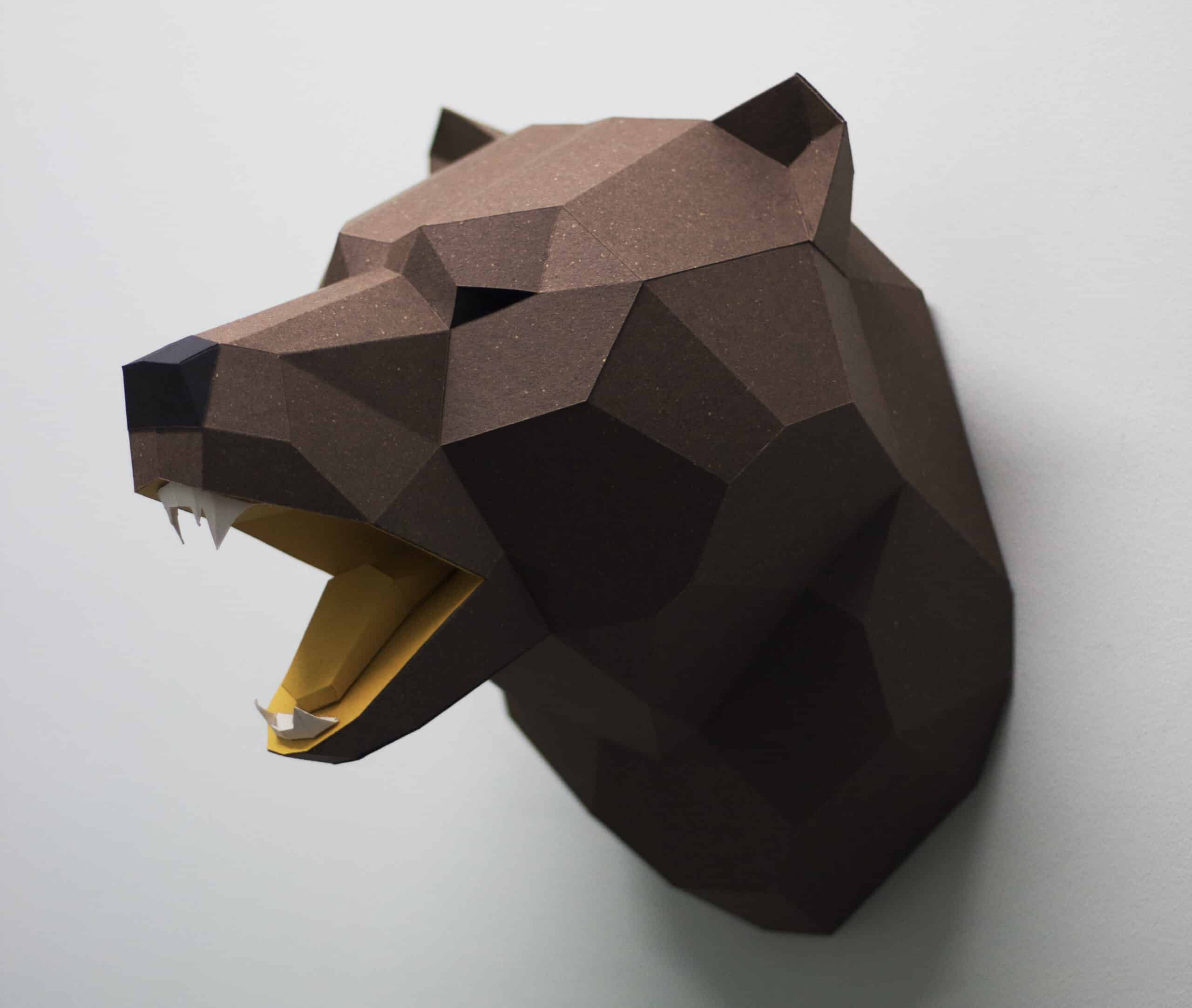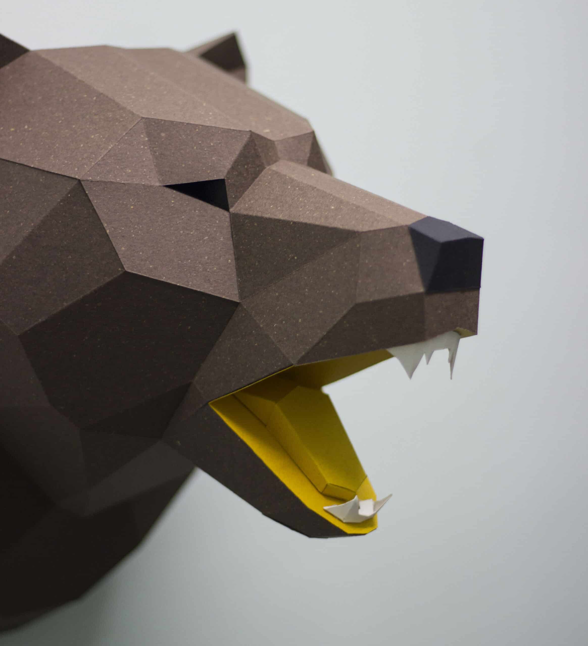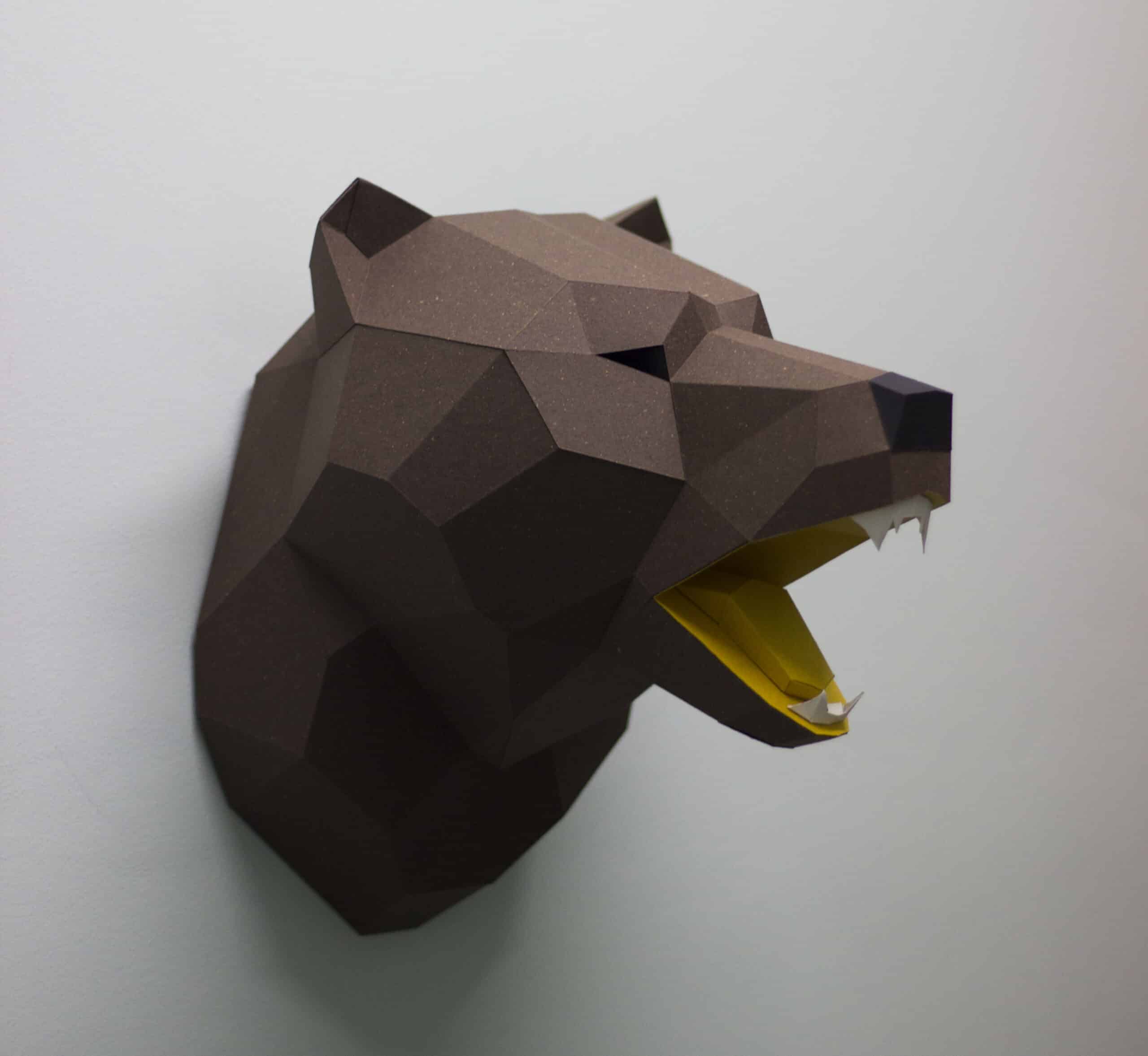 3D-Papercraft-Bastelset: Bärenkopf als Trophäe