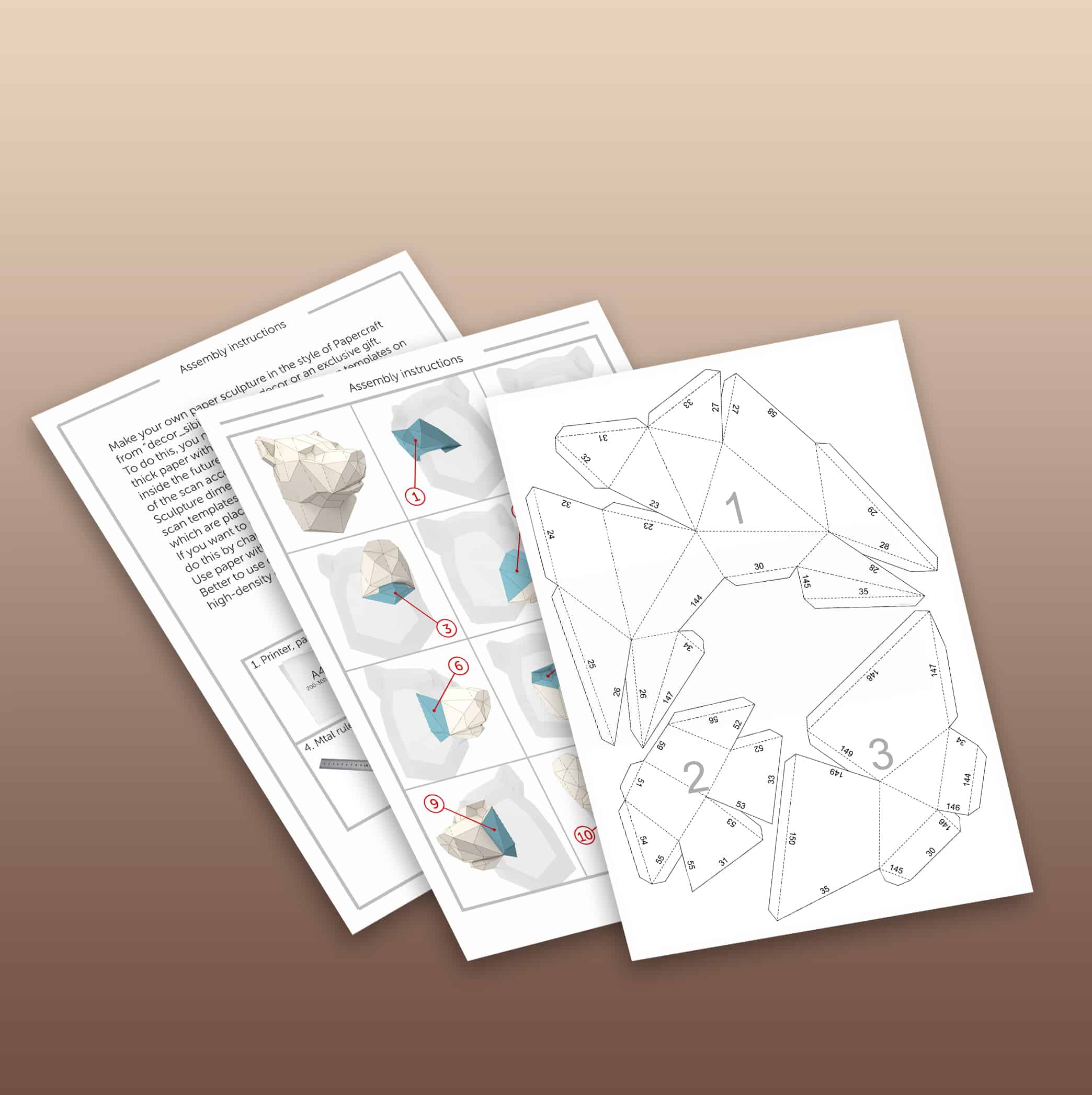 Dieses Modell des Bärenkopfs misst 500 x 351 x 311 mm nach dem Zusammenbau. Es ist so konzipiert, dass es mit hochwertigem Papier oder Karton (250-300 g/m²) hergestellt wird und bietet eine solide und langlebige Struktur, die Ihr Zuhause lange Zeit verschönern wird.