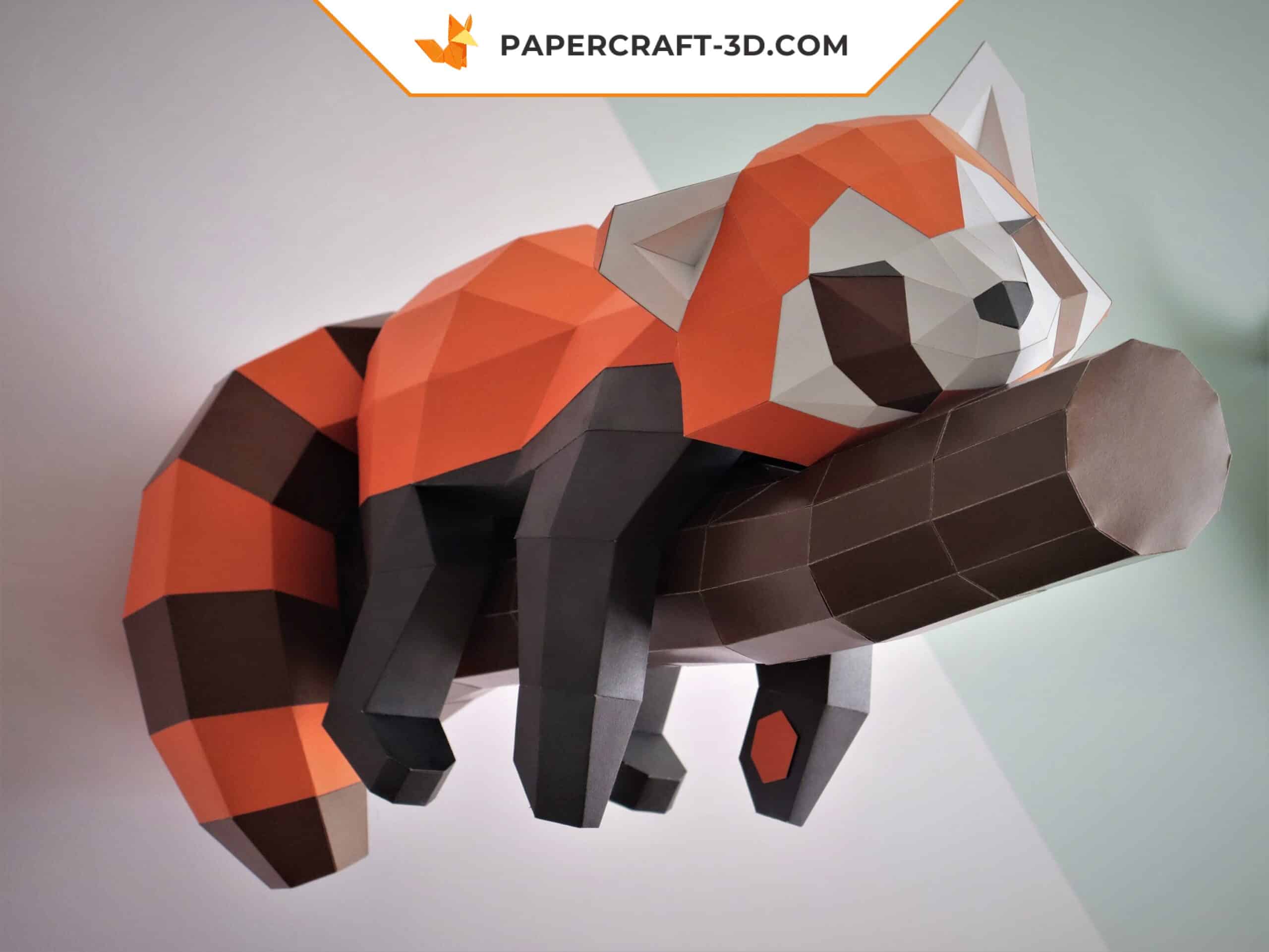 Papercraft panda roux mural en origami 3D : perché, curieux, irrésistible