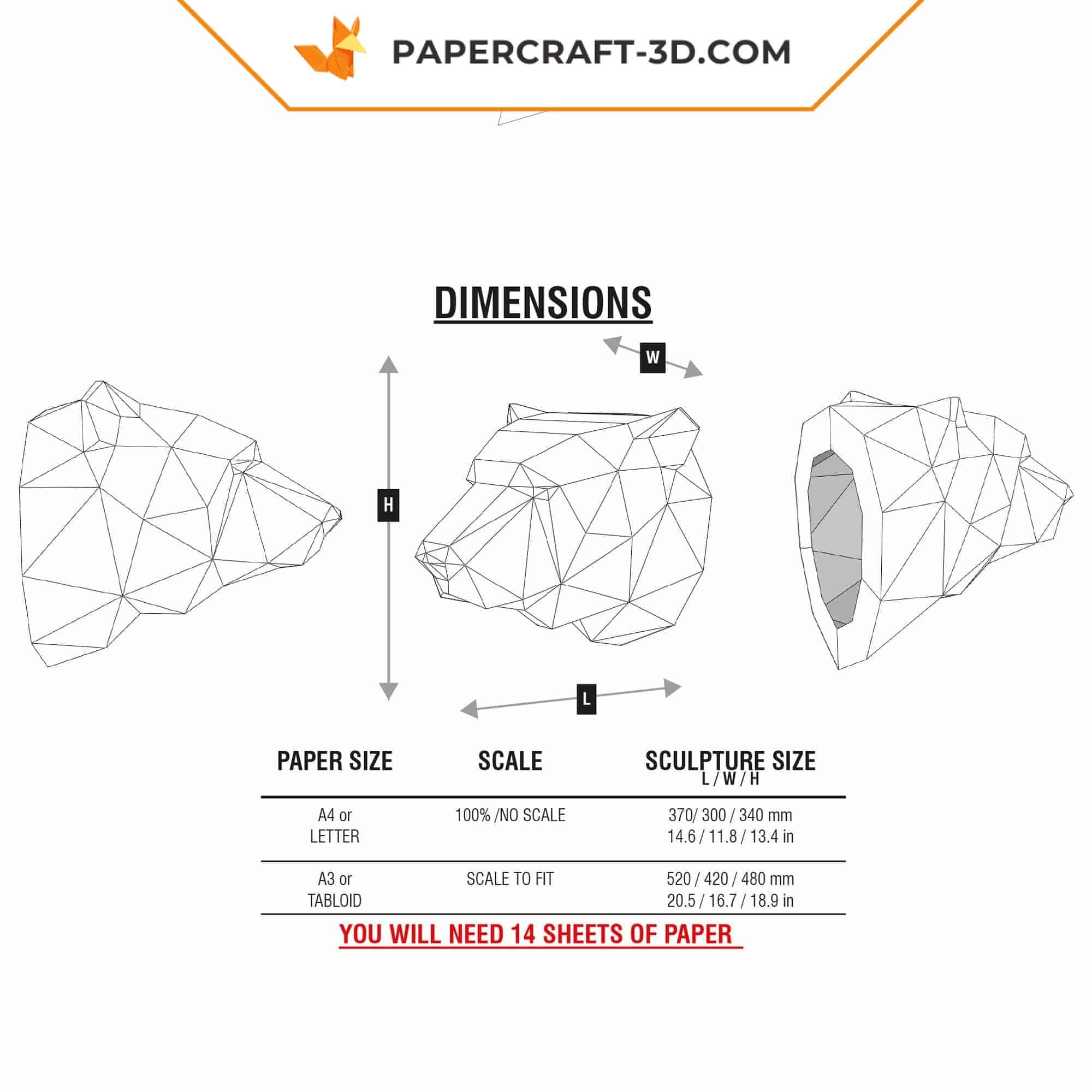 Technische Daten des Eisbär-Papercraft-Origami-3D