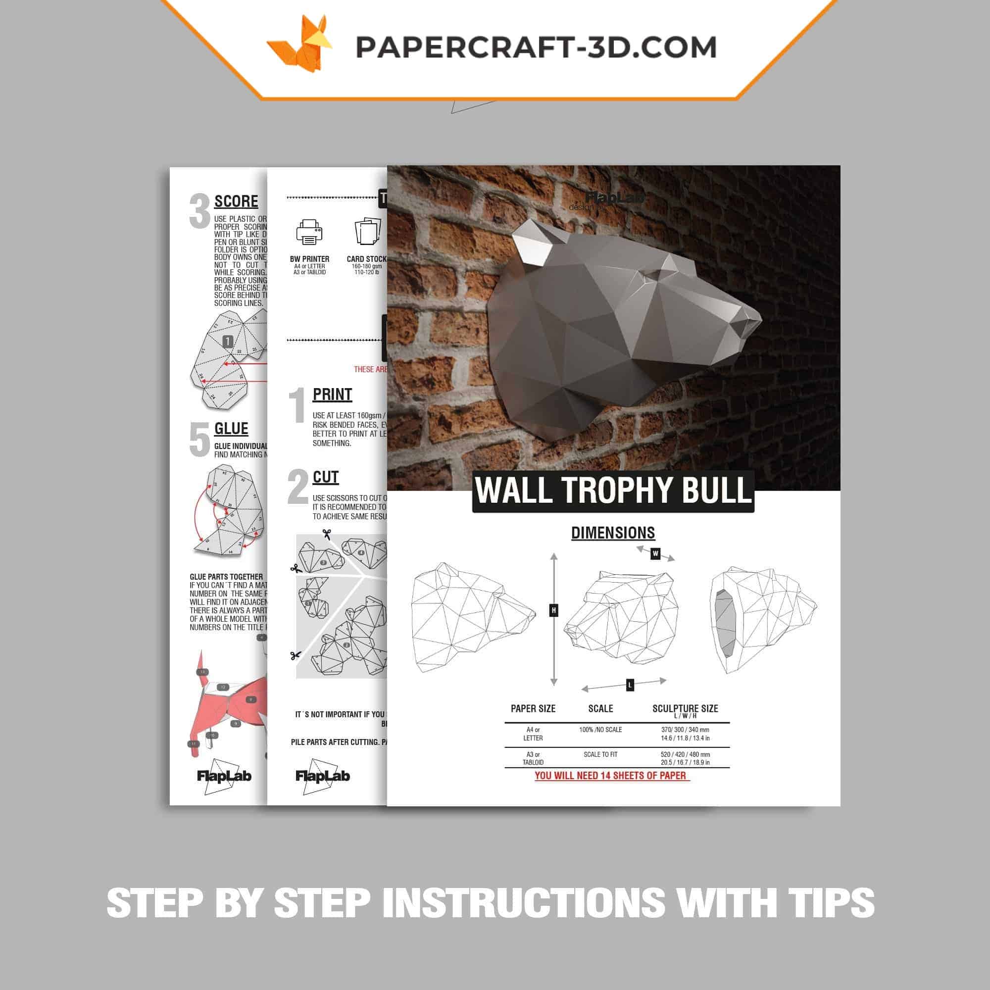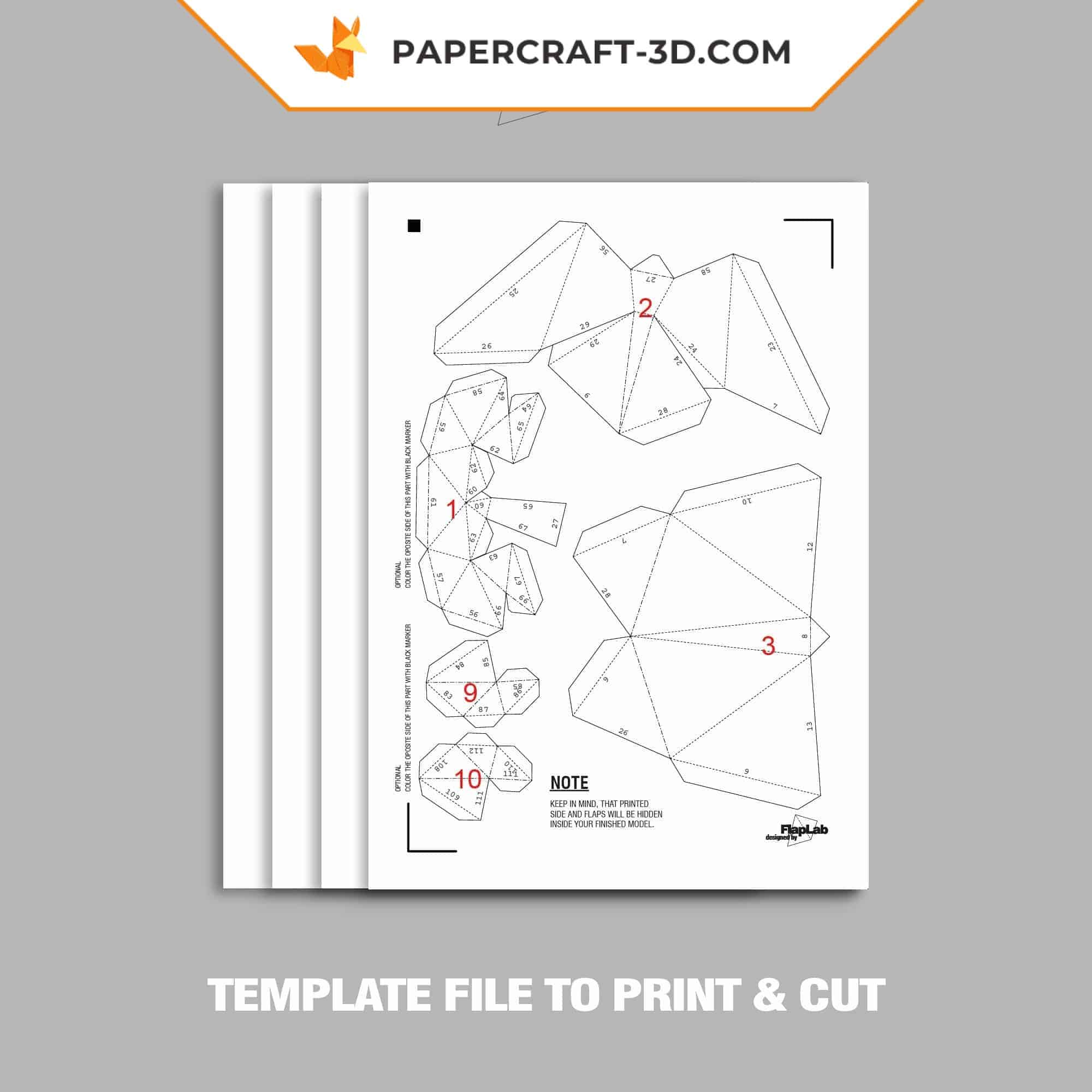 Dieses Projekt erfordert 14 Blatt Papier im Format A4 oder A3 mit einer Dichte von 200 bis 250 g/m². Die genauen Abmessungen des fertigen Werks sind in den bereitgestellten Bildern verfügbar. Die PDF-Datei ist im A4-Format, kann jedoch je nach Ihren Vorlieben auf A3 skaliert werden.