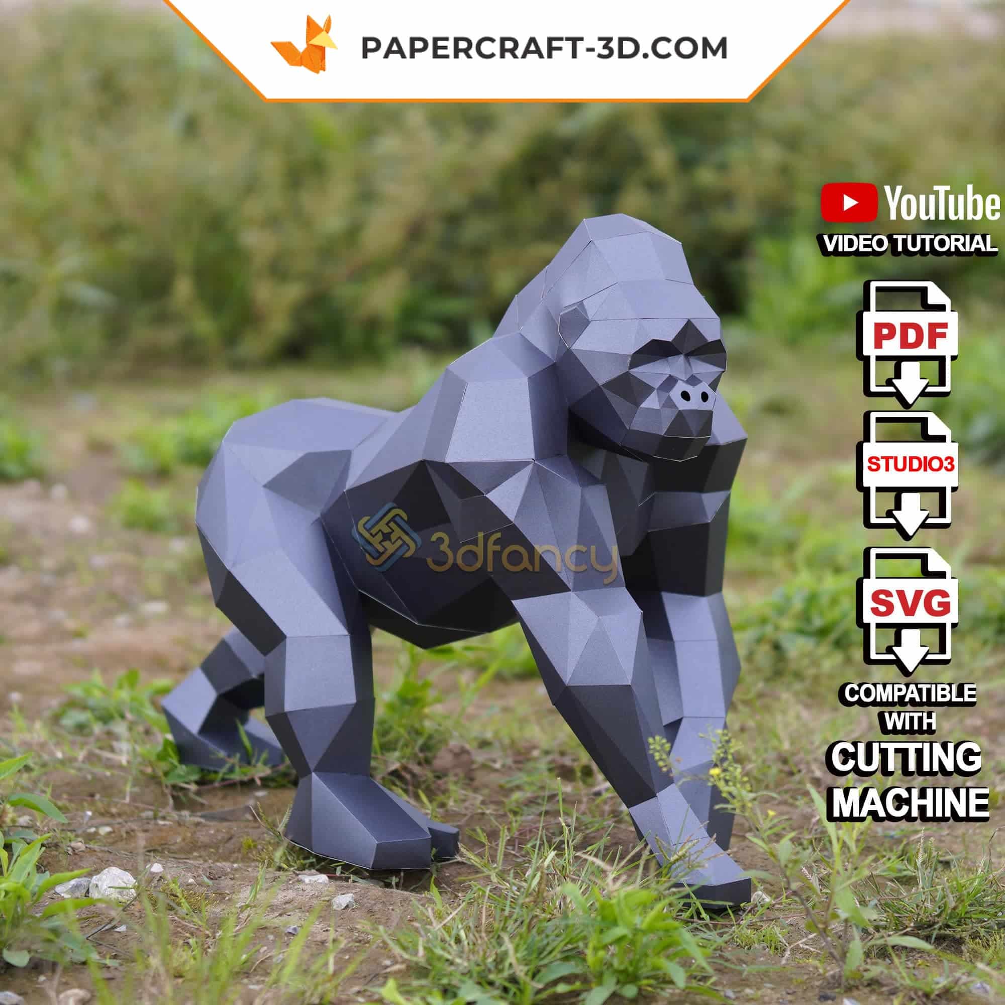 Gorille en origami 3D à assembler pas à pas, pour une sculpture spectaculaire de 530 mm de hauteur, 406 mm de largeur et 700 mm de profondeur. Le modèle se compose de 28 pages et 55 pièces, idéal pour un projet créatif immersif et décoratif.