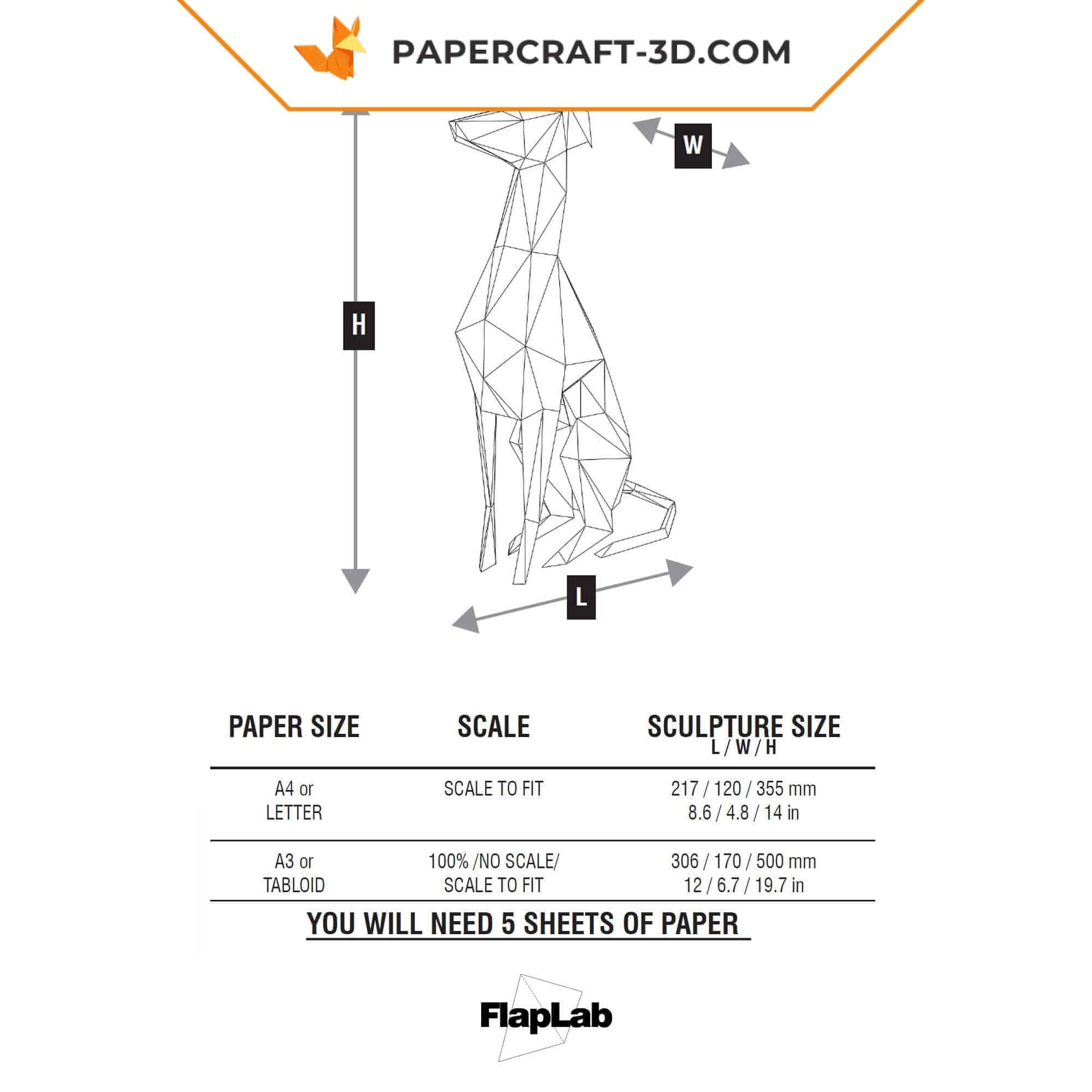 Technische Details des Papercraft Italienisches Windspiel in Origami