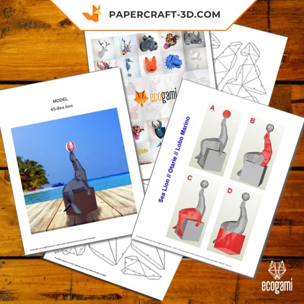 Papercraft Seelöwe in 3D-Origami: Digitales Kit oder Komplettbox