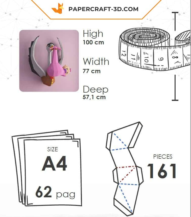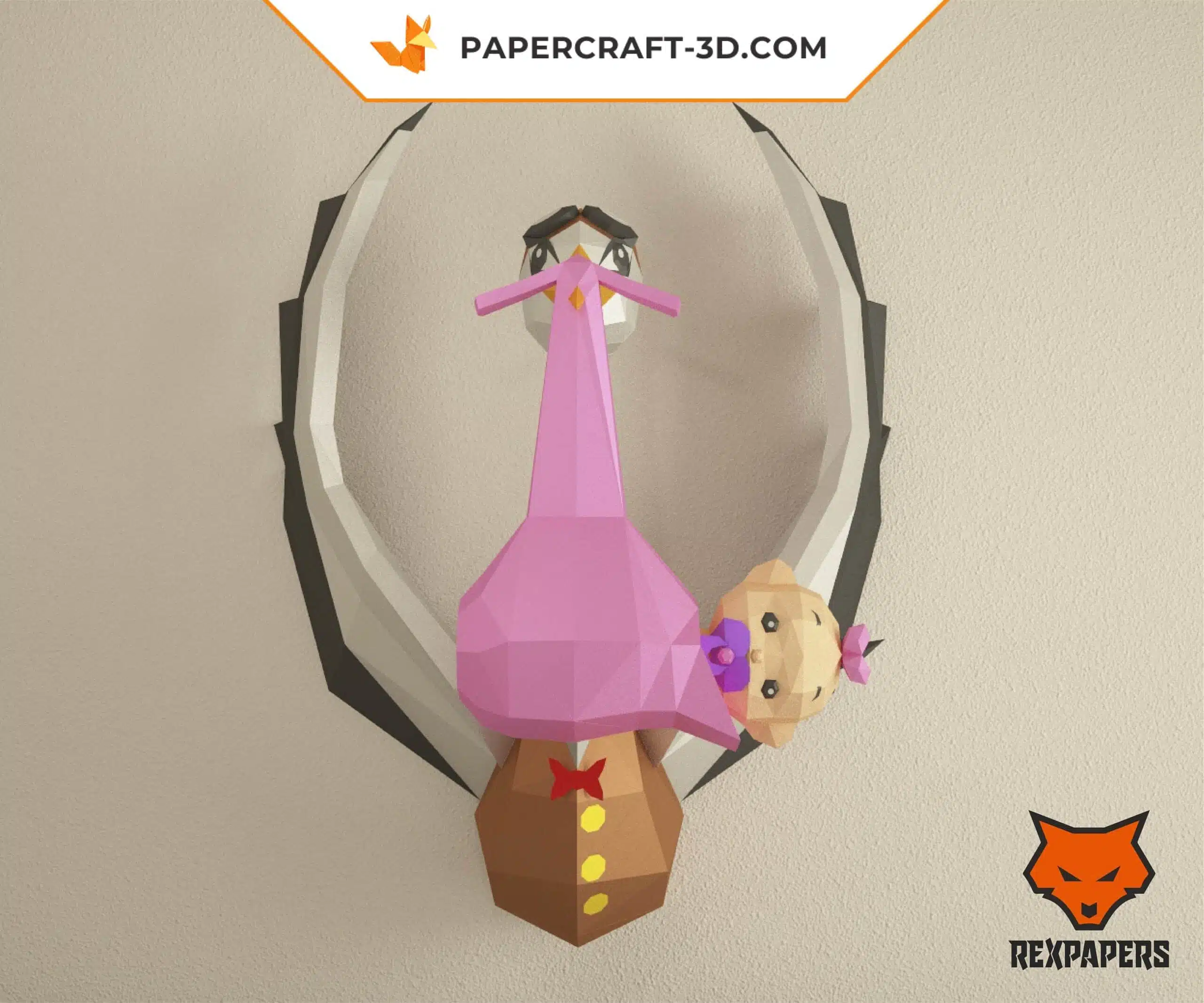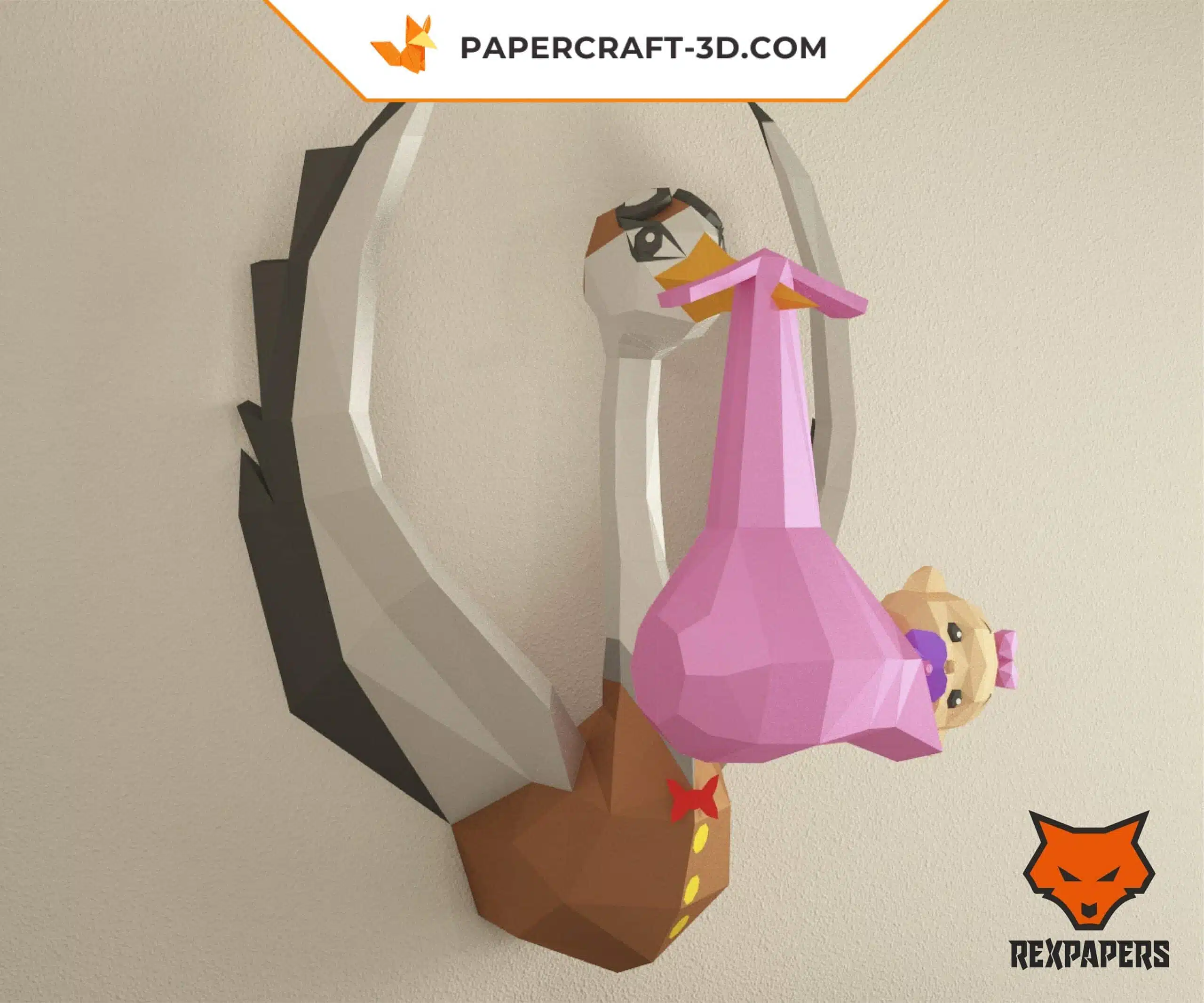Papercraft Storch in 3D-Origami: digitales Kit oder komplette Box