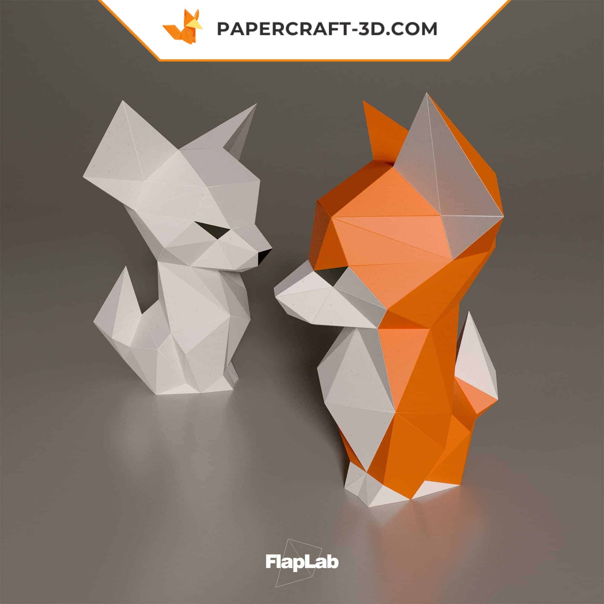 Papercraft eines süßen Fuchses in 3D-Origami: digitales Kit oder komplette Box