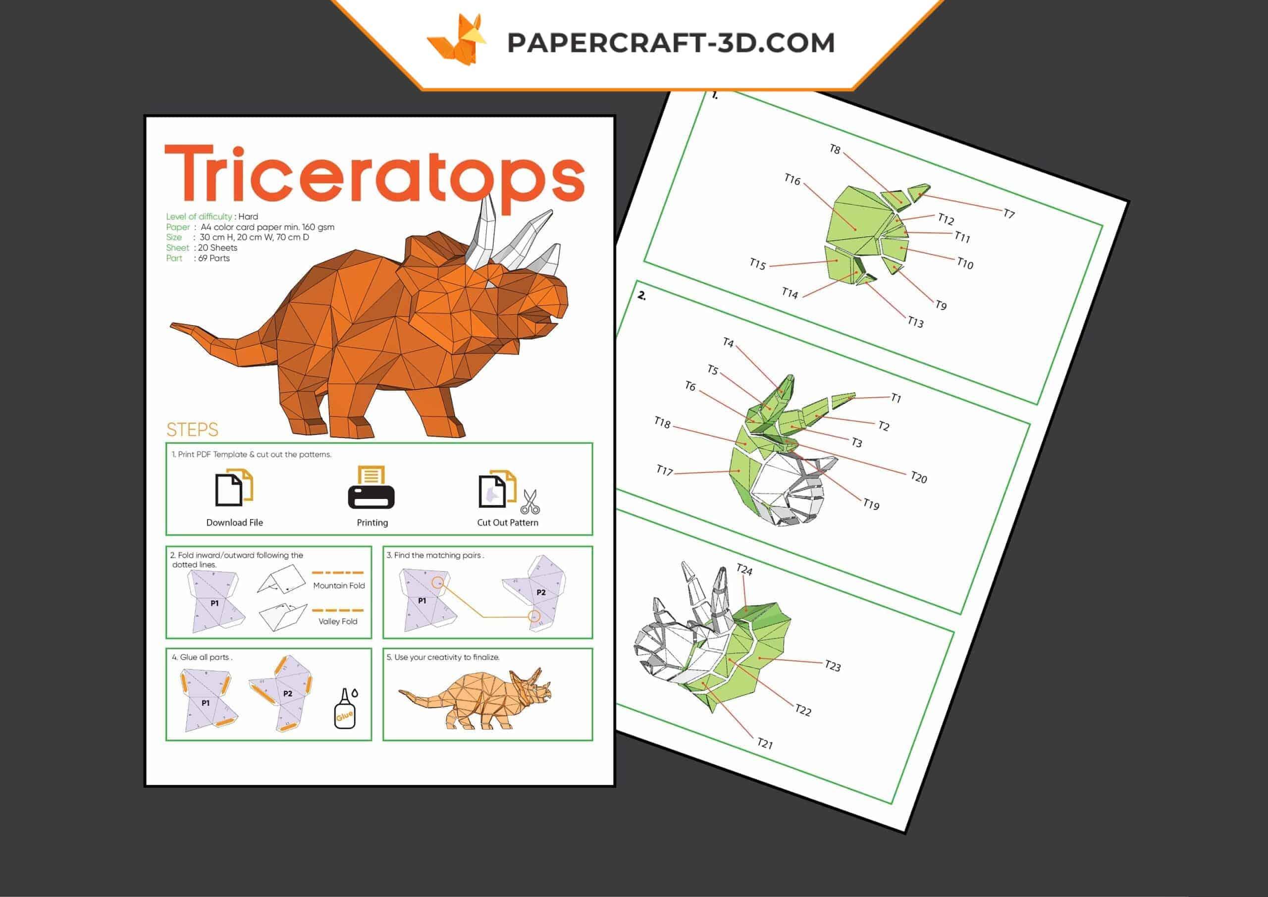 Technische Daten des Triceratops-Papercrafts