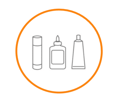 White, fast-setting glue is best. Apply your glue and hold for 5 to 10 seconds. Be careful not to apply too much, or it will spill over.
