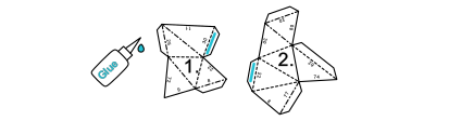 Glue the different parts with the same number, following the order of the different parts in the instructions.