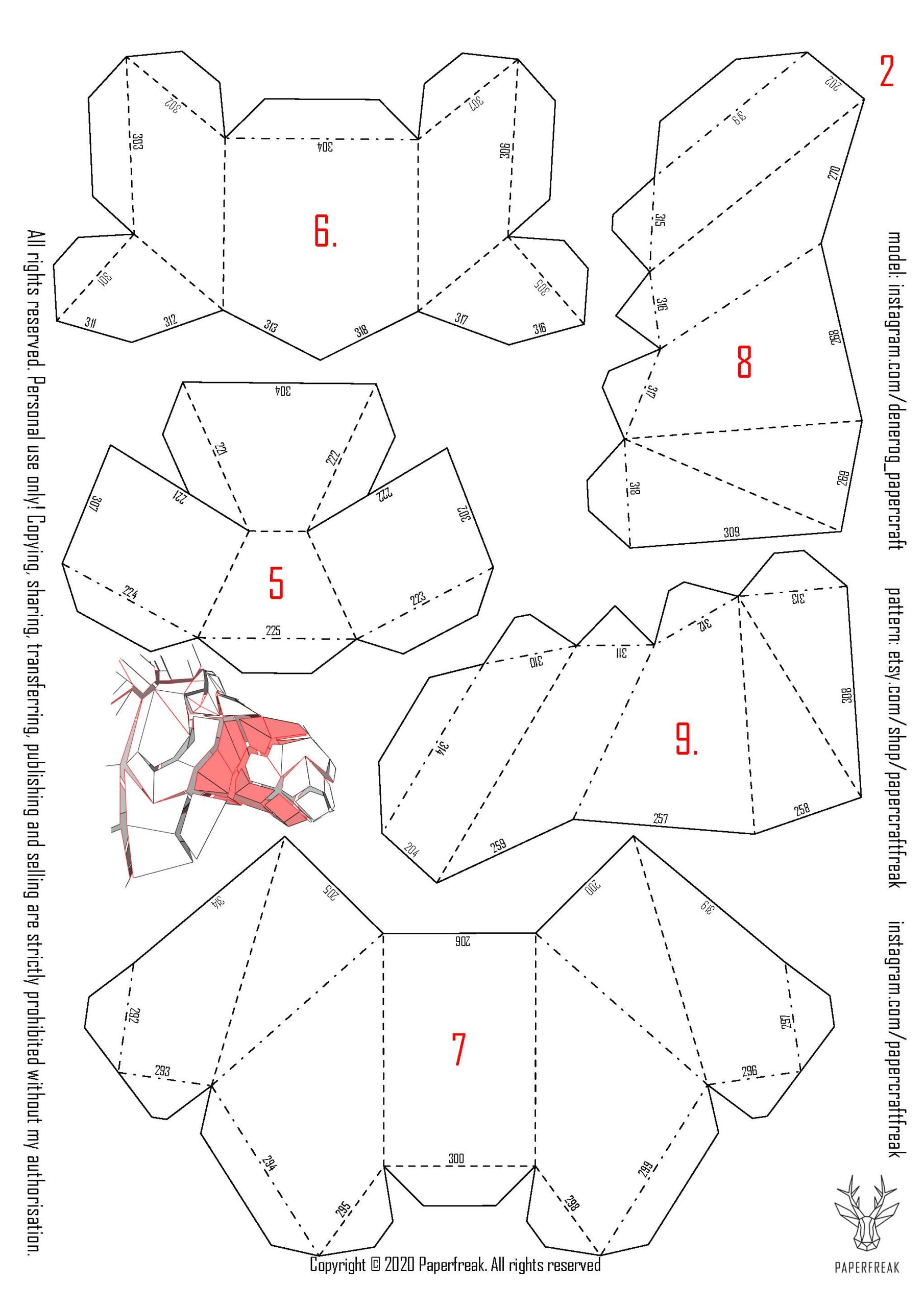 - Color scheme: Sheets 1-14 for the head, Sheets 15-24 for the antlers