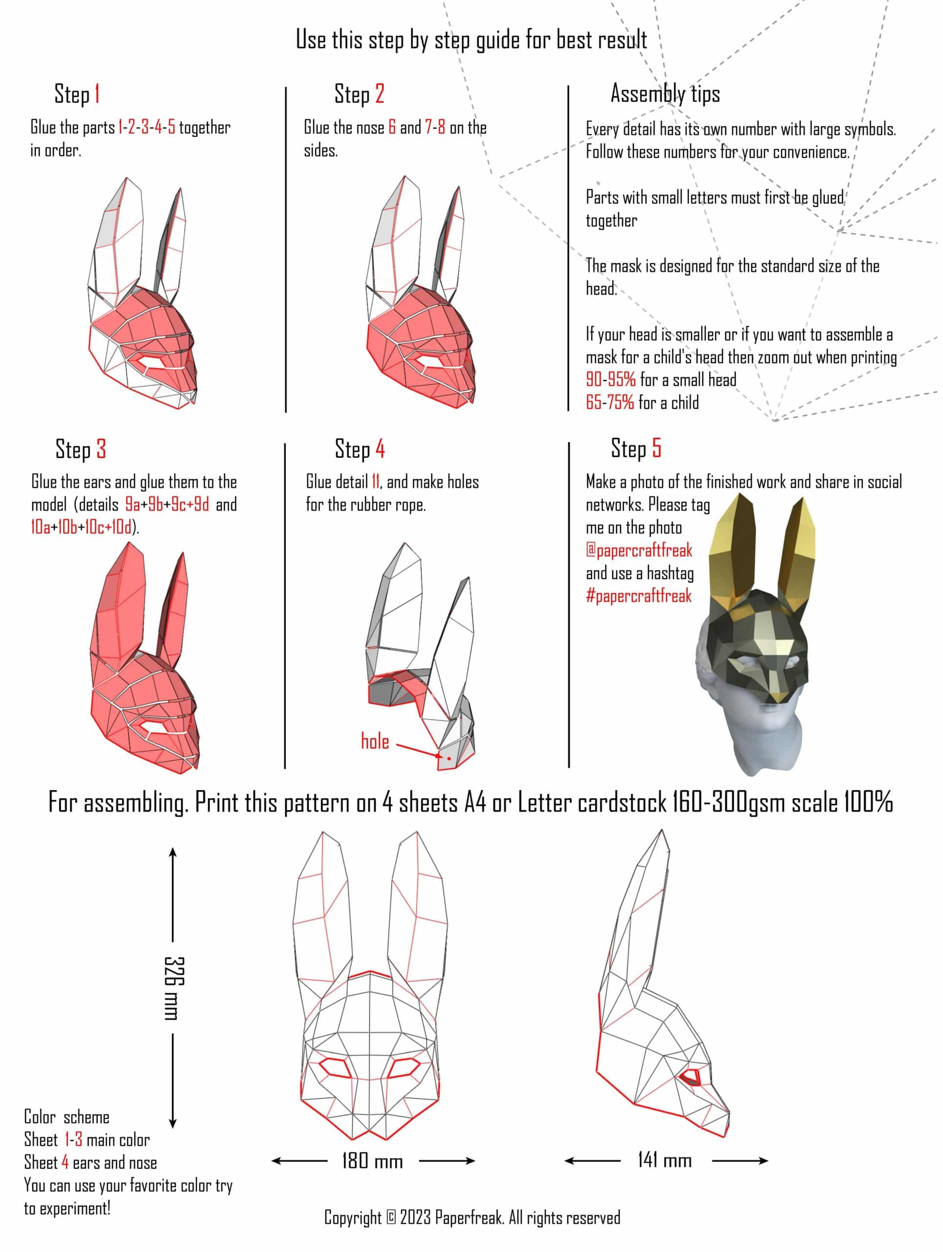 Step into a world of imagination with the charming 3D papercraft rabbit mask. Whether you’re gearing up for a themed costume party, celebrating Easter, or planning a unique Halloween outfit, this delightful rabbit mask will make you stand out. Envision yourself captivating everyone’s attention as you showcase your handcrafted creation, sparking smiles and conversations. Designed for both origami enthusiasts and those seeking an enjoyable DIY project, this mask is the perfect blend of creativity and fun.