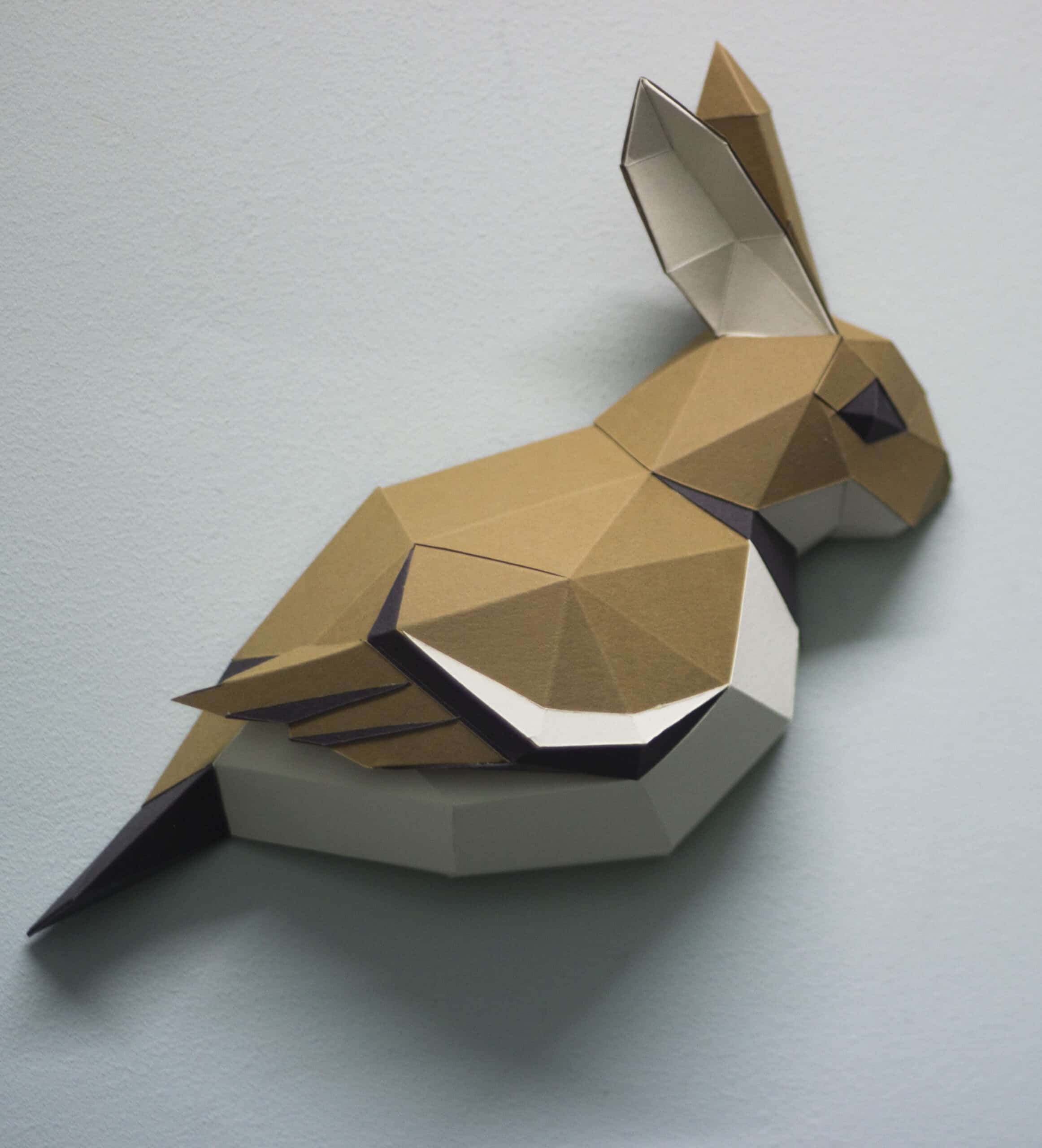3D origami sparrow and rabbit papercraft: digital kit or complete box
