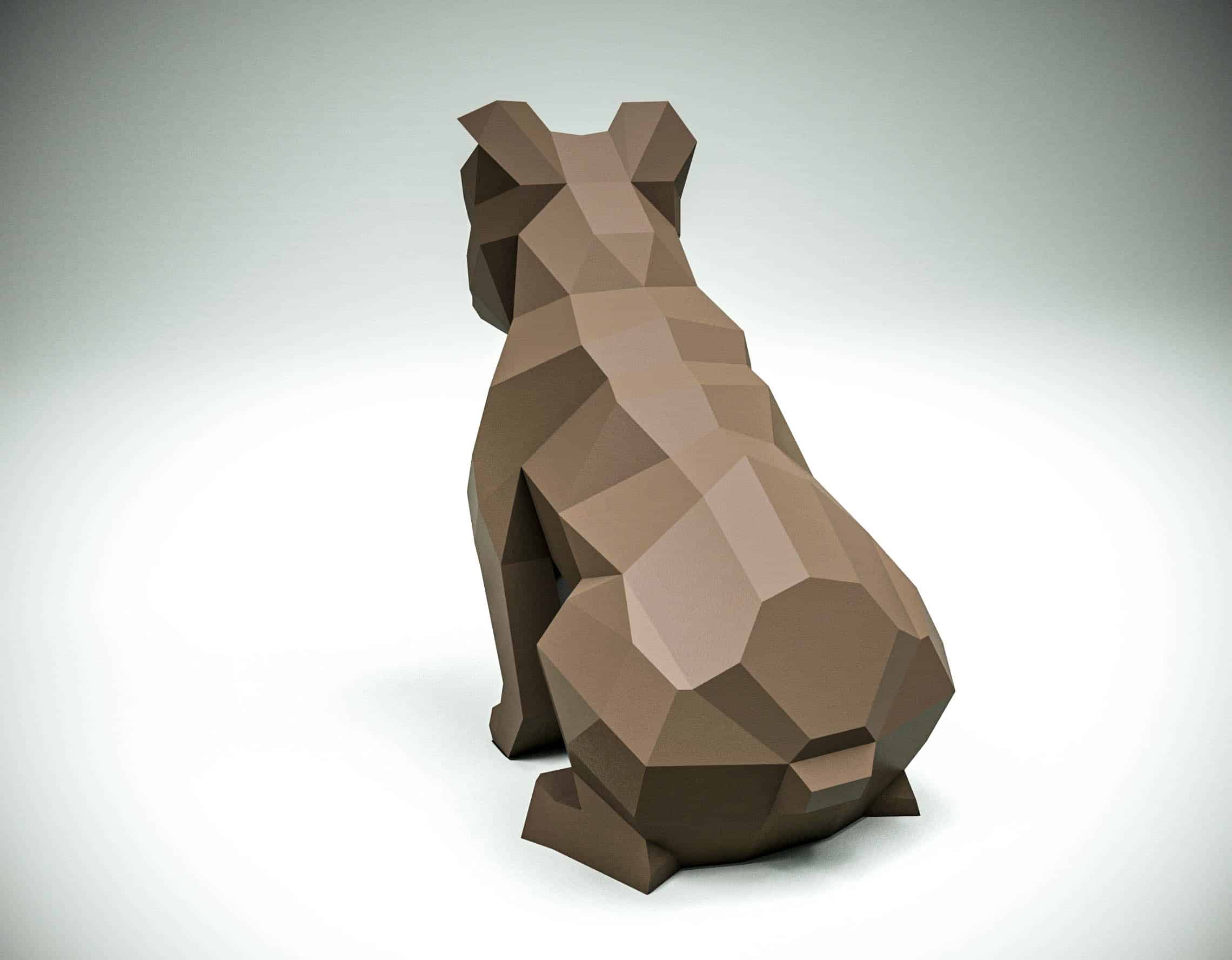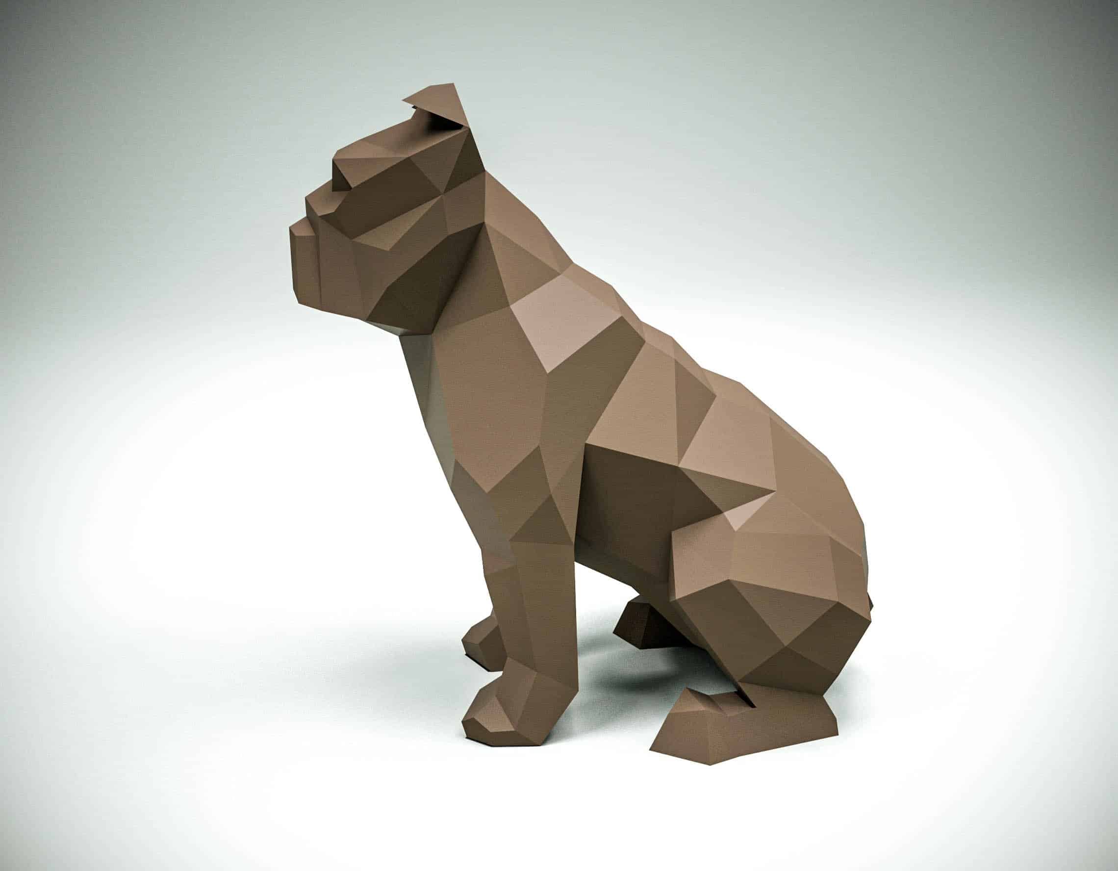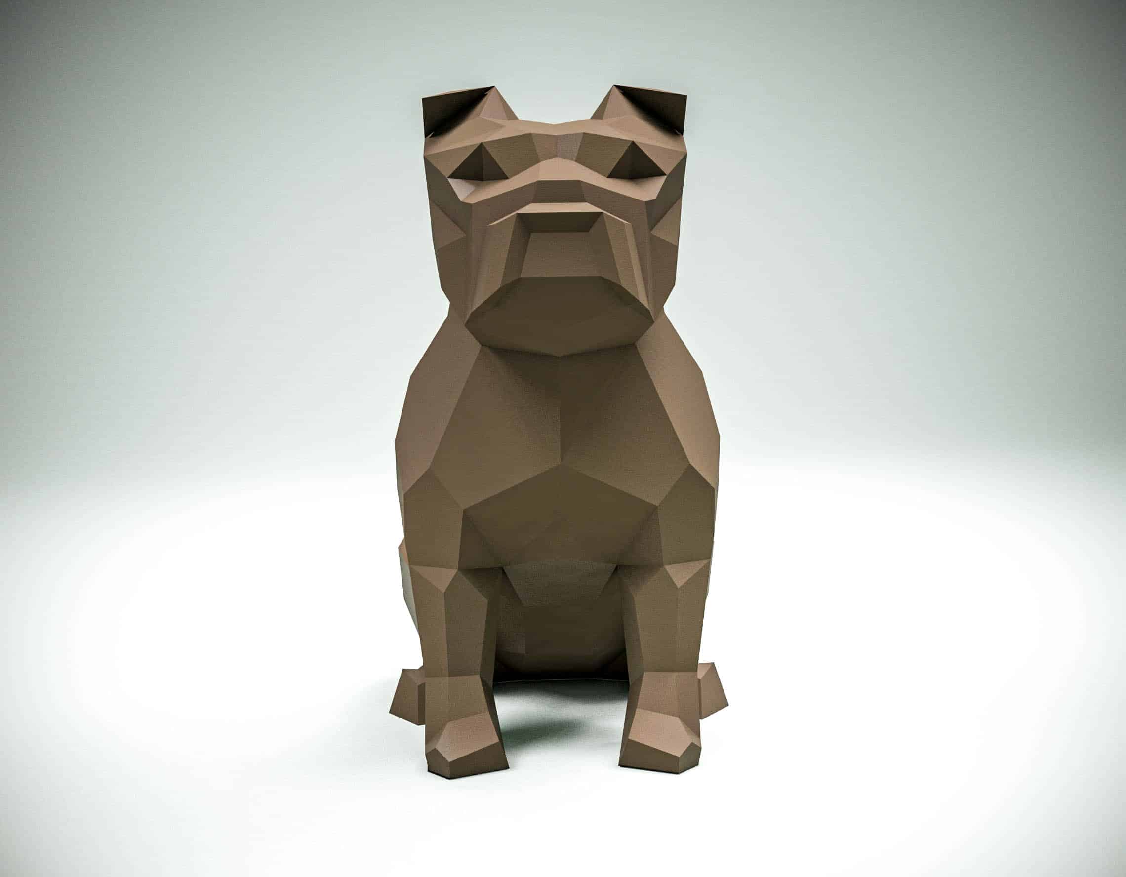 Kit di papercraft bulldog seduto in origami 3D: digitale o scatola completa