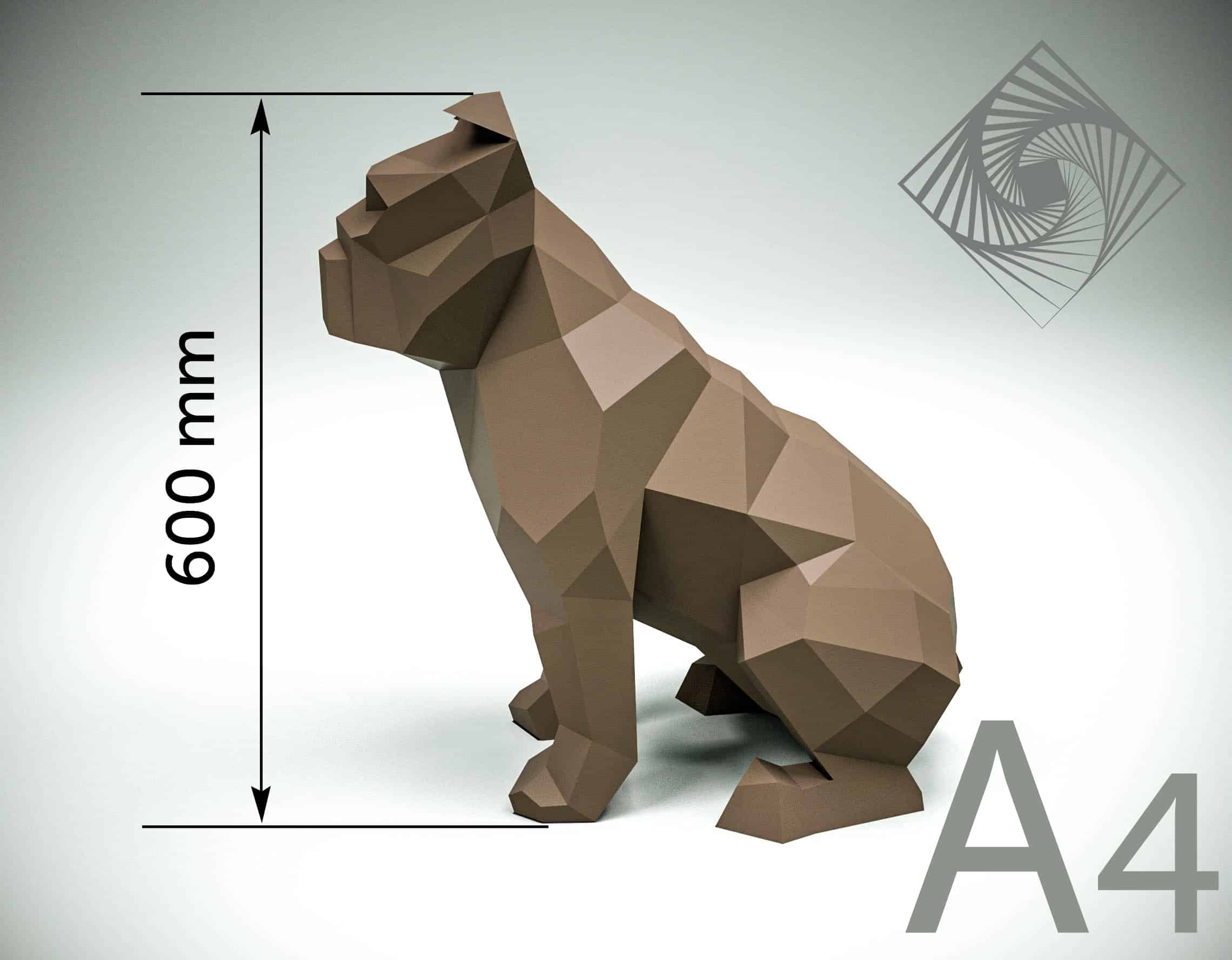Caratteristiche tecniche del bulldog seduto in origami 3D