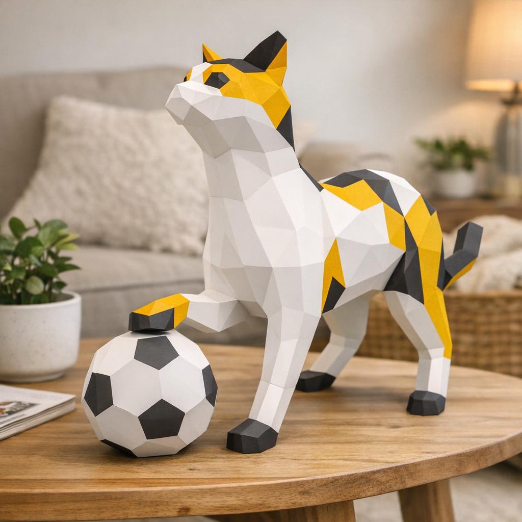 Il est là, concentré, la patte prête à bondir. Ce chat géométrique en papercraft 3D capture l’instant précis où le jeu commence, quand la balle roule et que tout s’arrête autour. Les lignes sont franches, les volumes marqués, et chaque facette donne du caractère à la scène. Un objet déco qui attire l’œil, mais surtout une expérience de montage qui fait oublier le temps.