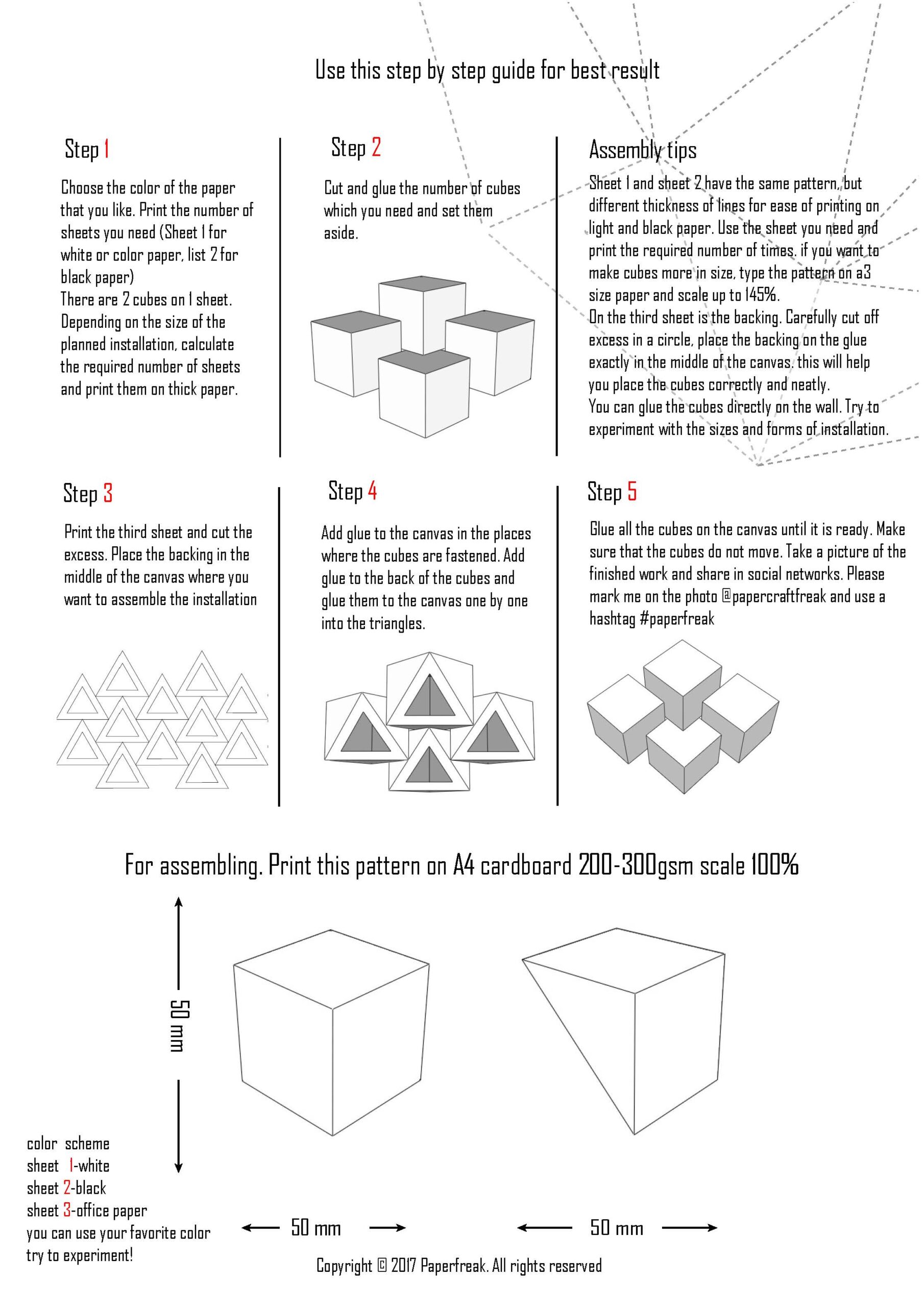 - Cubes can be scaled up by printing on A3 paper at 145% size