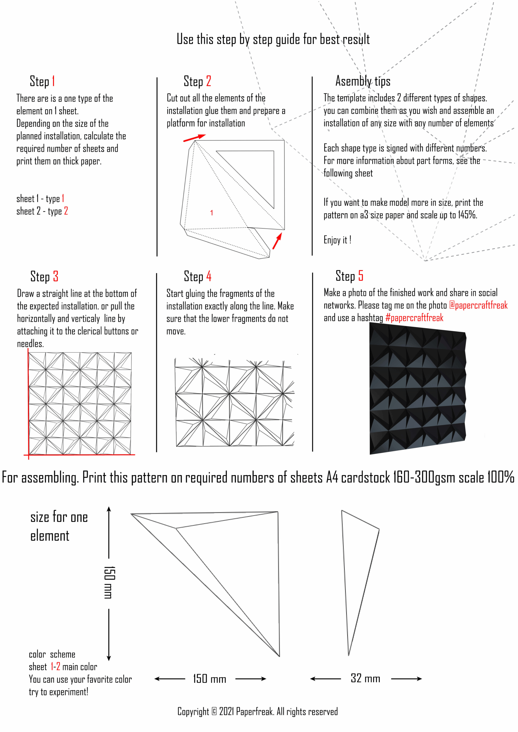 Features of the geometric 3D wall art papercraft kit