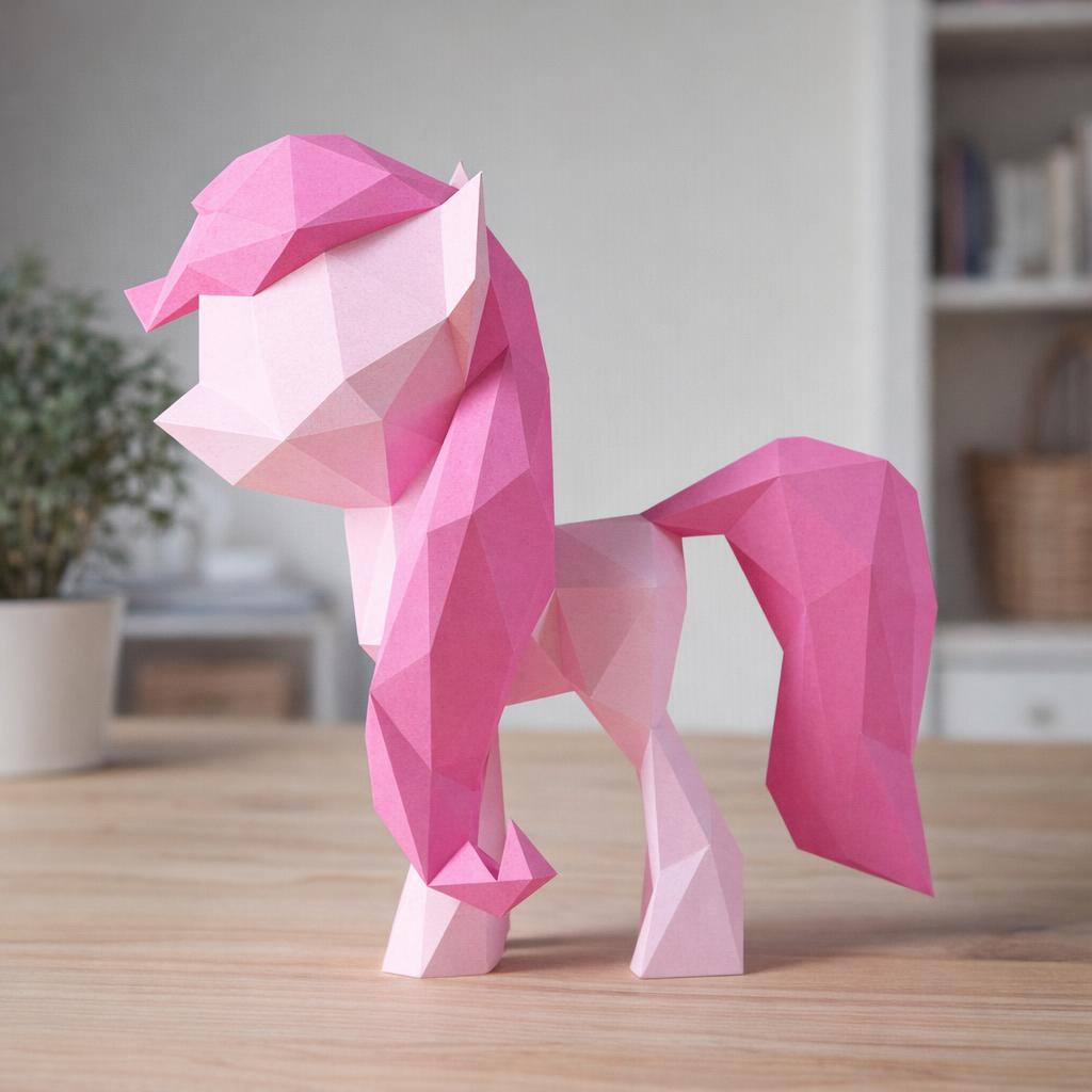 Papercraft de petit poney rose en origami 3D : une création pleine de douceur