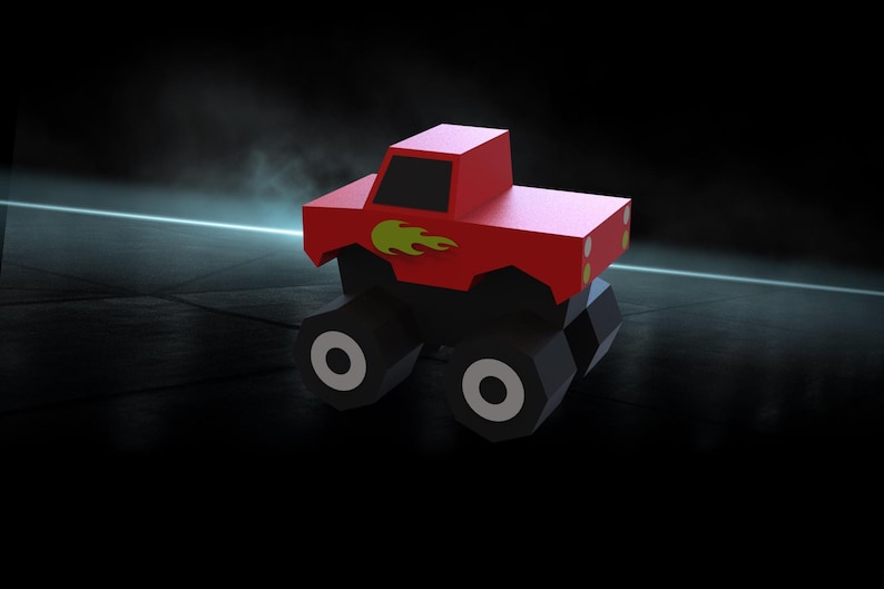 Technical specifications of the 3D origami monster truck papercraft for kids