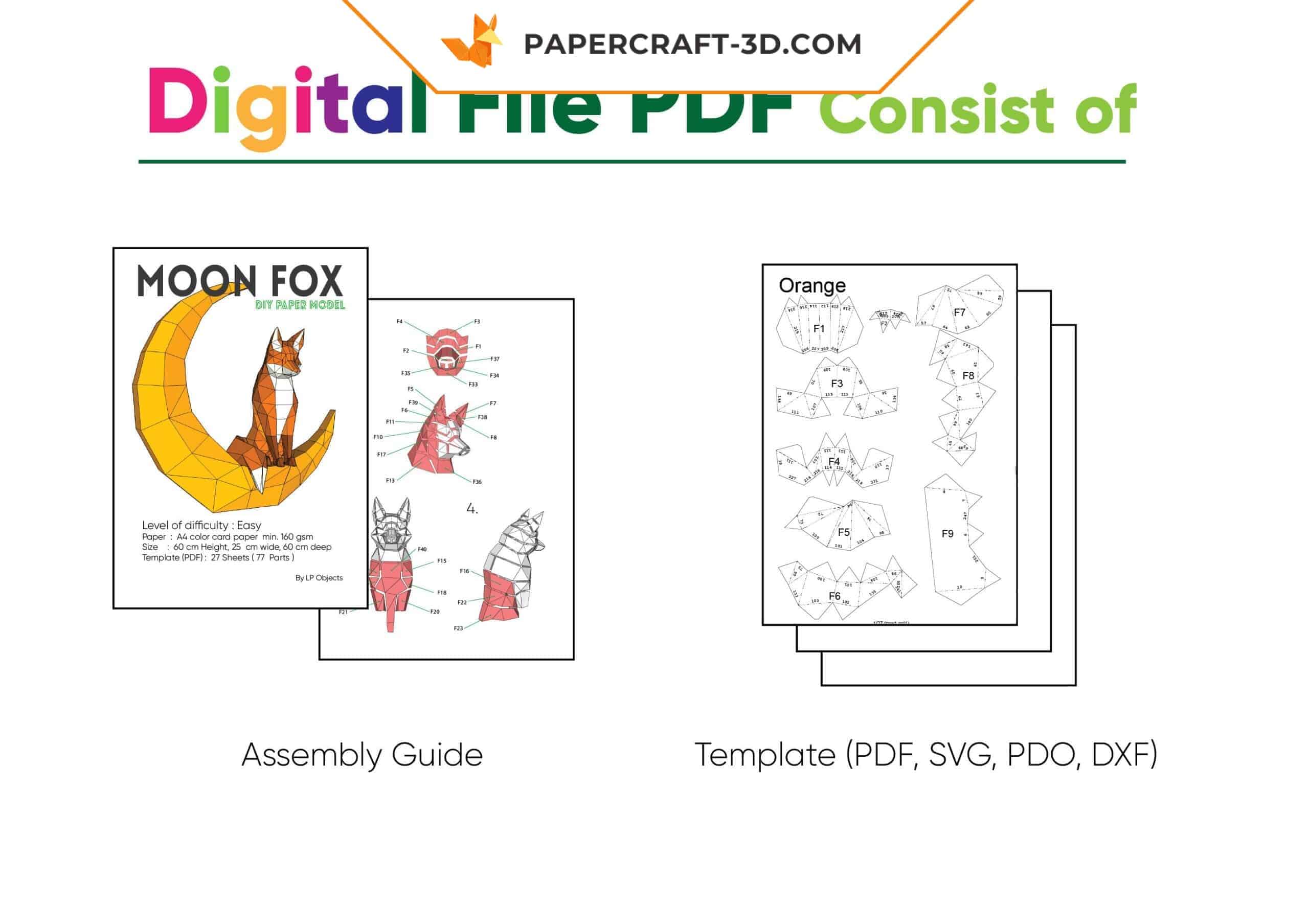 Moonlit fox papercraft: digital kit or complete box set