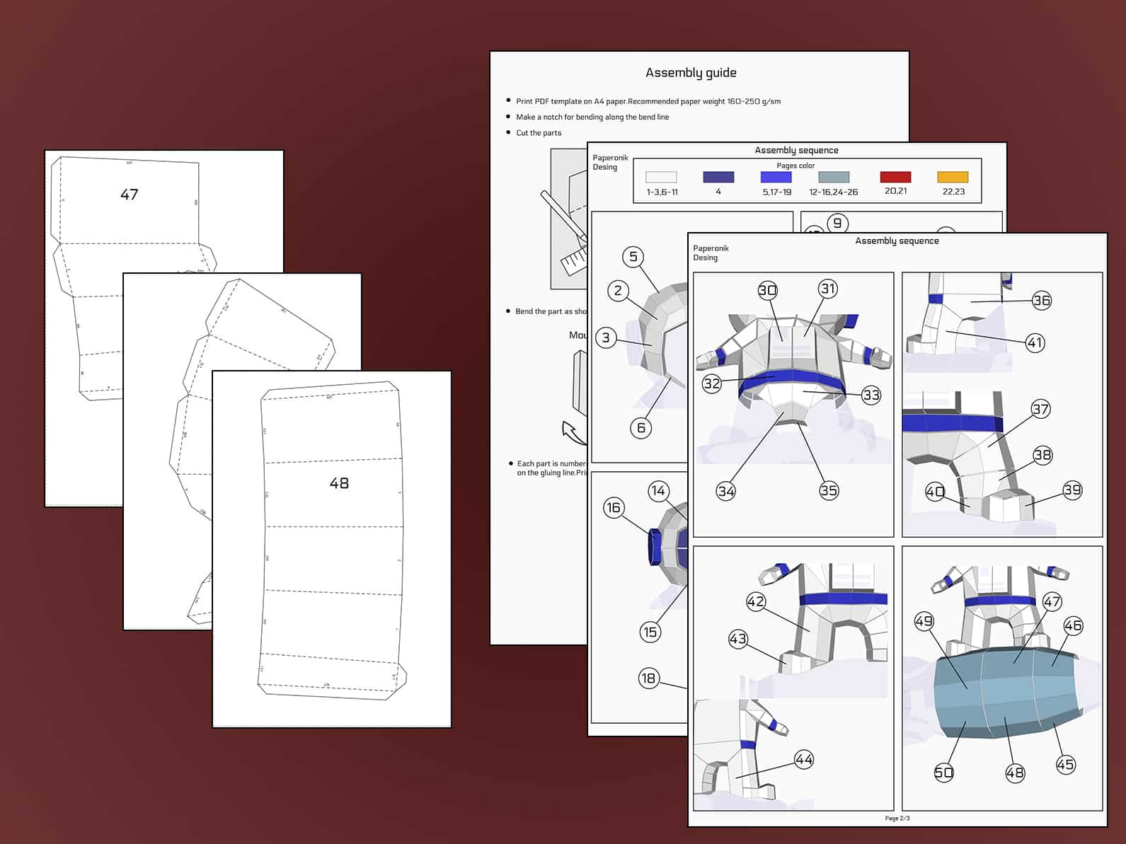 Whether you choose the digital papercraft kit or the complete box, you’ll have everything you need to bring this intrepid astronaut to life. The digital kit includes downloadable files, while the complete box contains printed sheets and all necessary accessories for an optimal assembly experience.