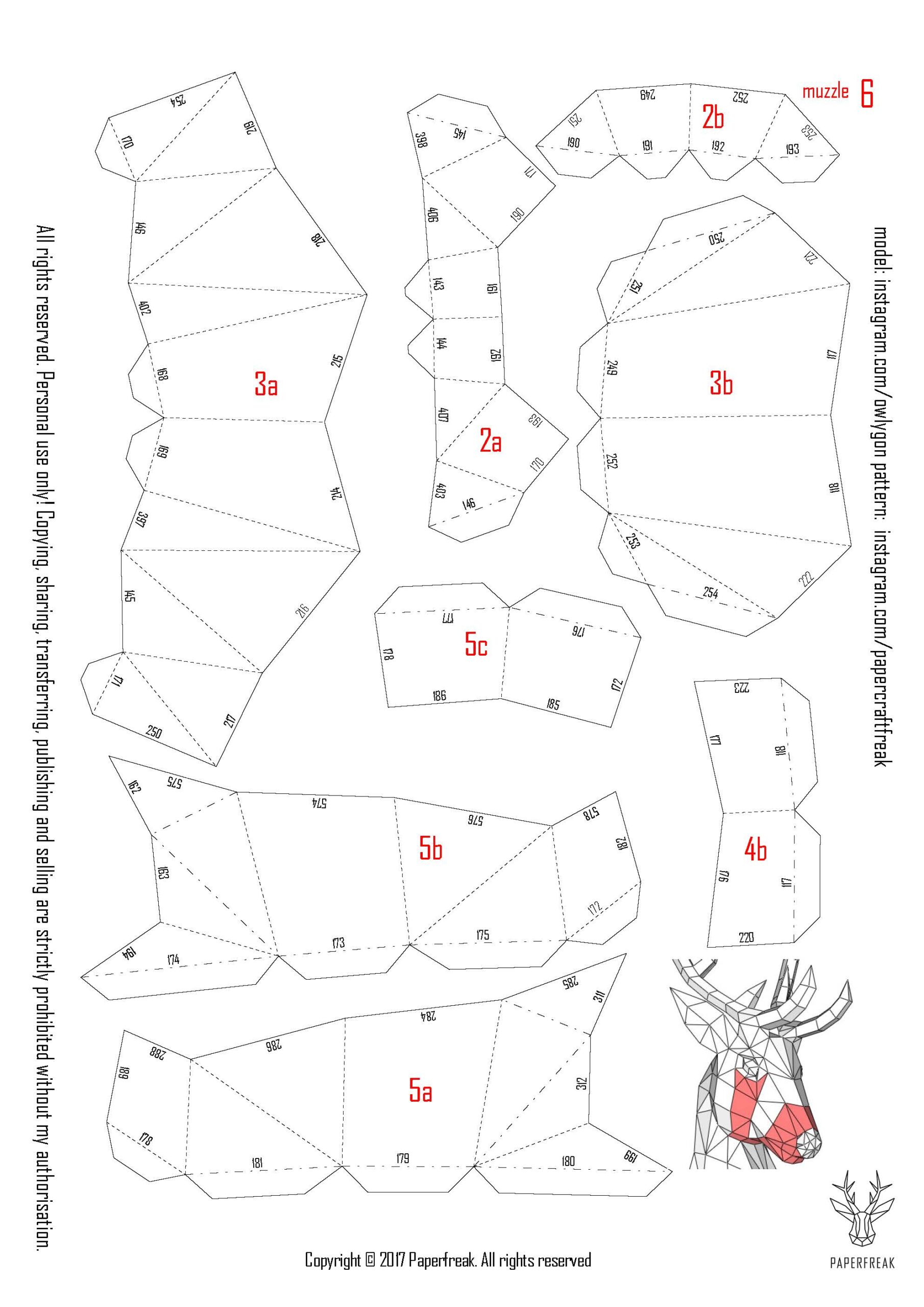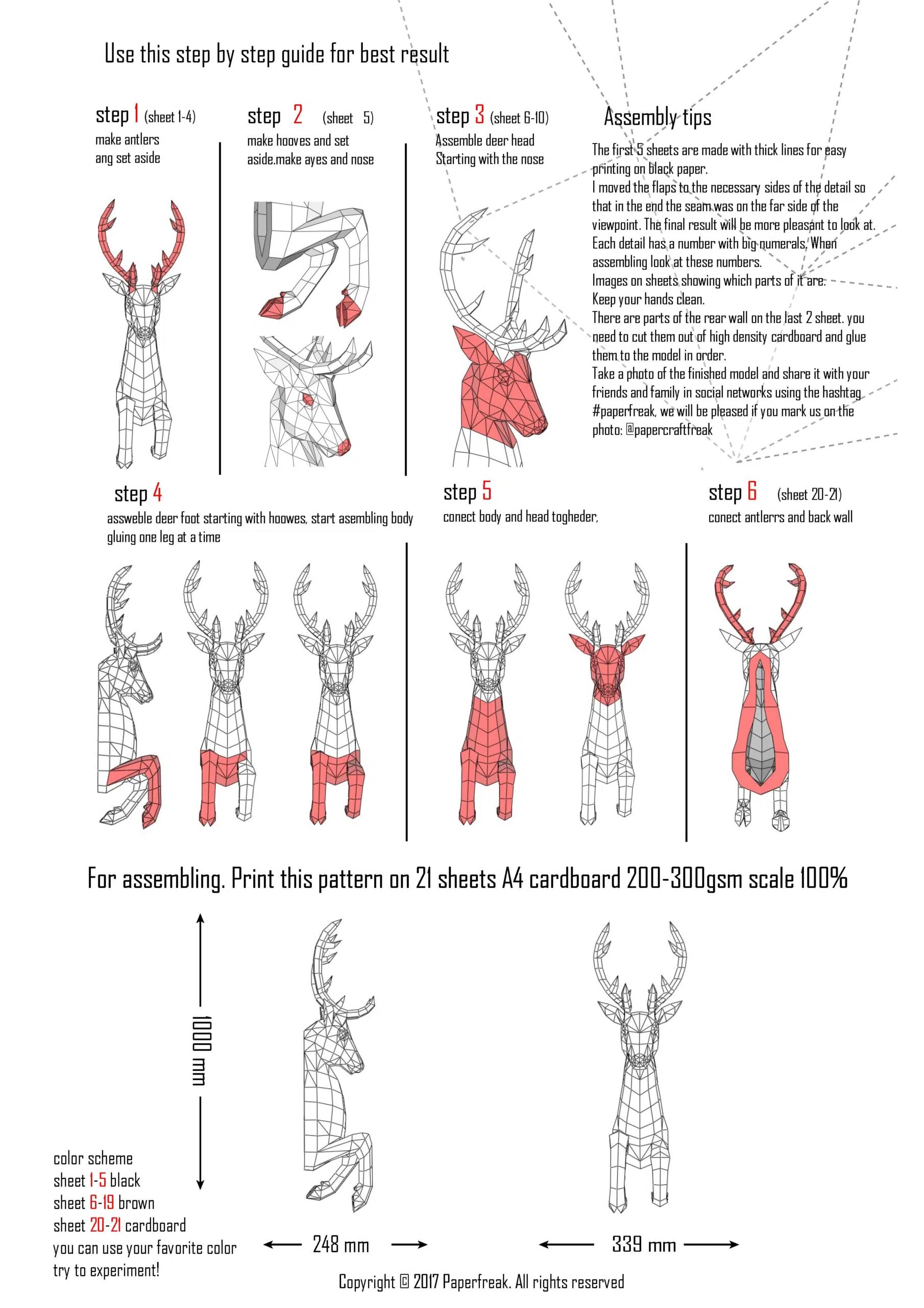Technical specifications of the 3D origami deer head papercraft