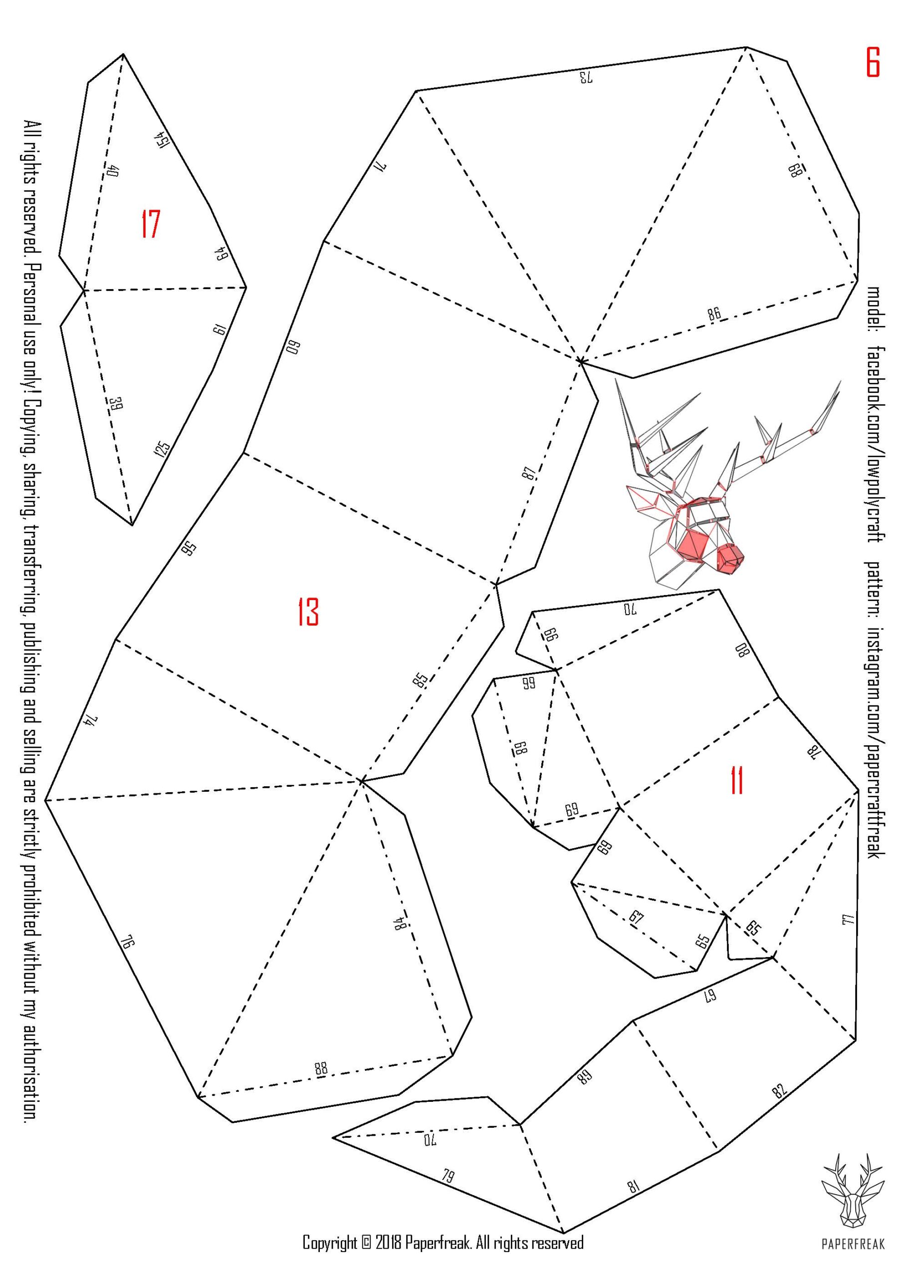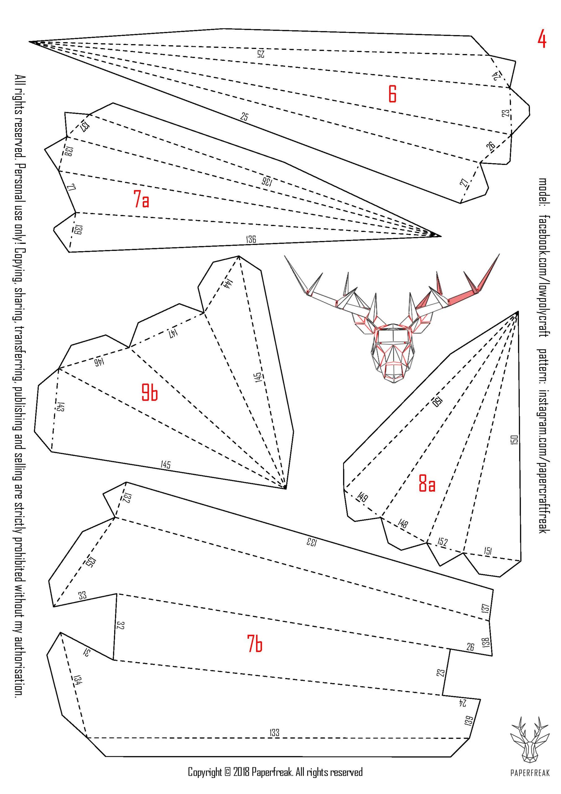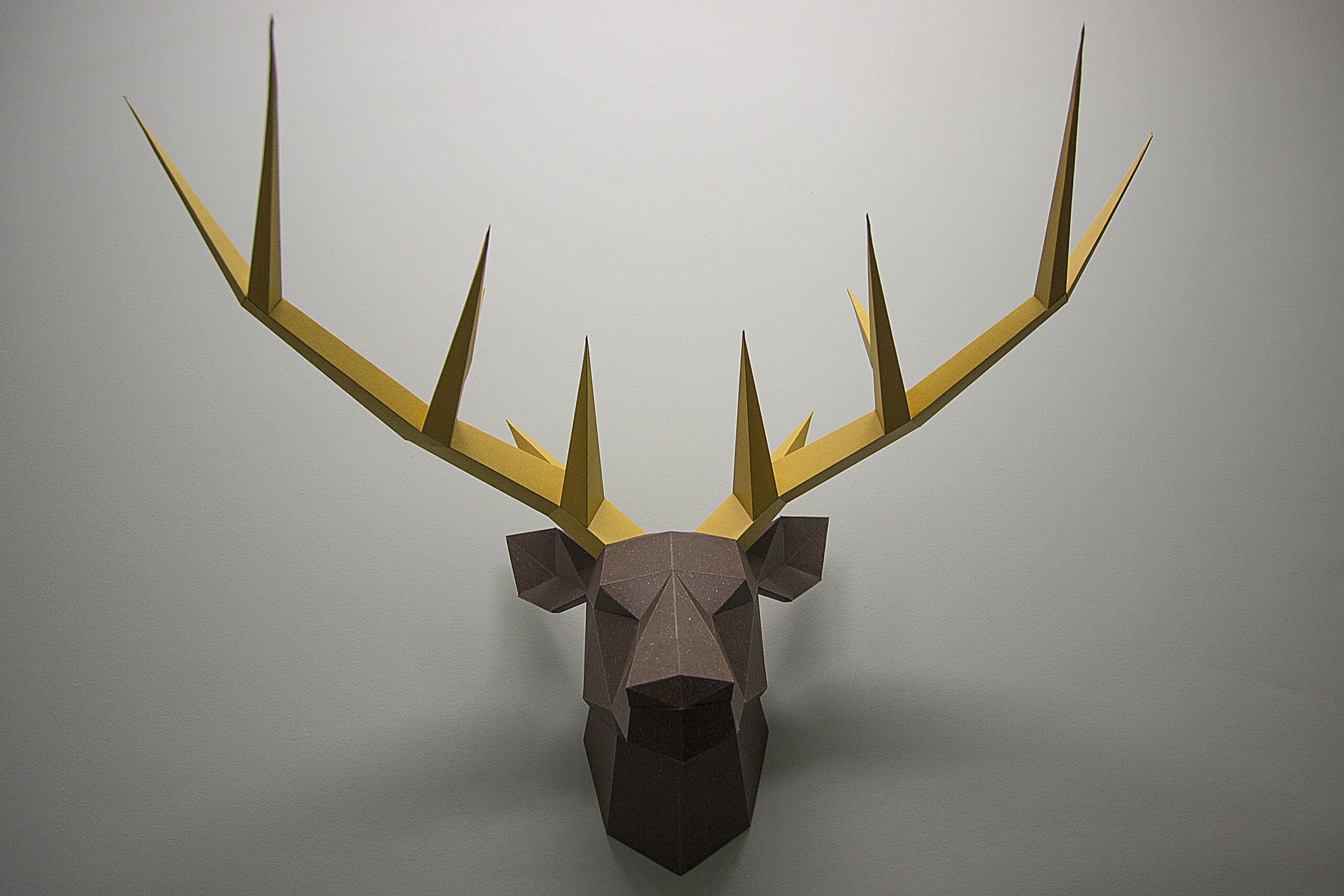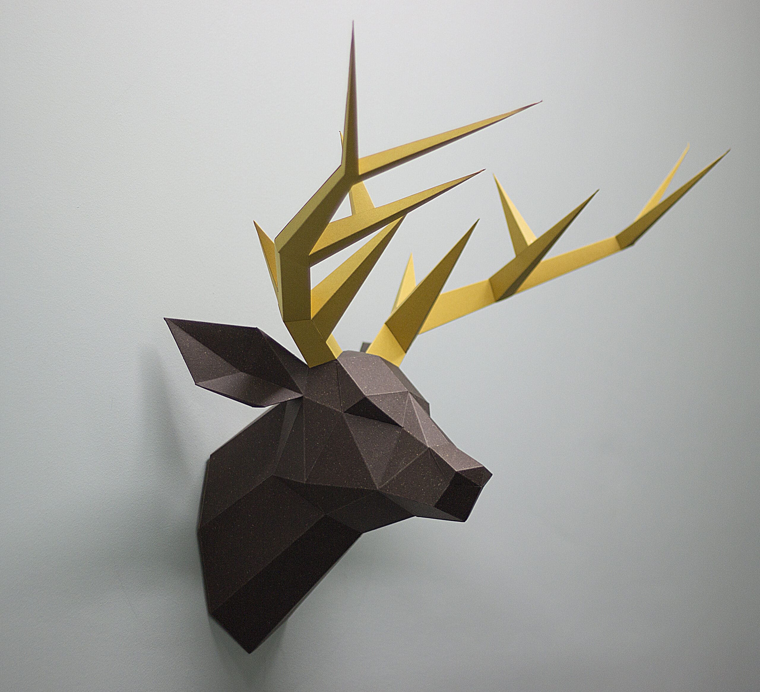This 3D origami deer head papercraft consists of 13 A4 sheets printed on thick paper (200-300gsm or 90lb-110lbs). Once assembled, it measures approximately 600mm in height, 397mm in depth, and 638mm in width. Detailed instructions will guide you step by step to create this impressive piece.
