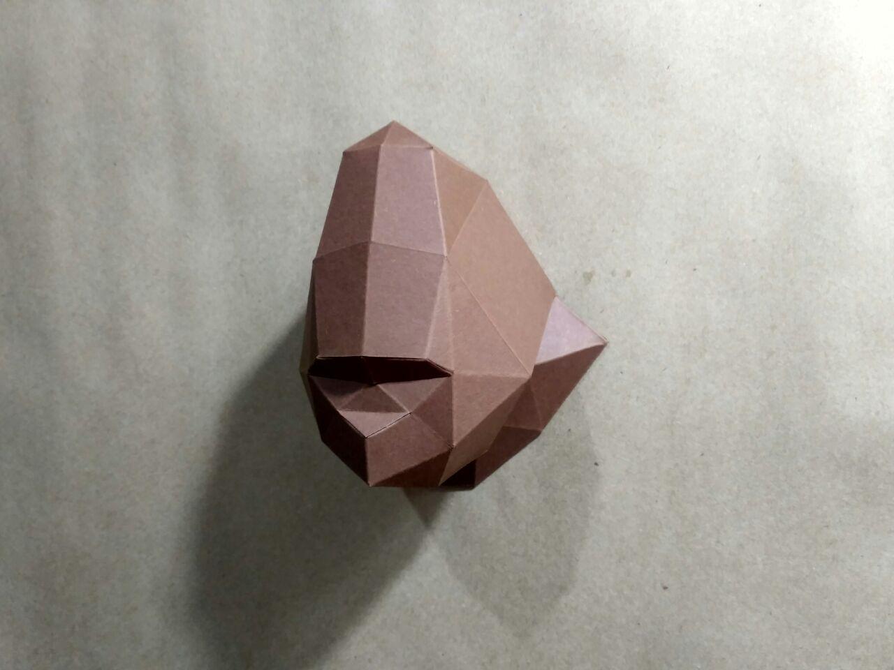 Papercraft gorilla head in 3D origami: digital kit or complete box