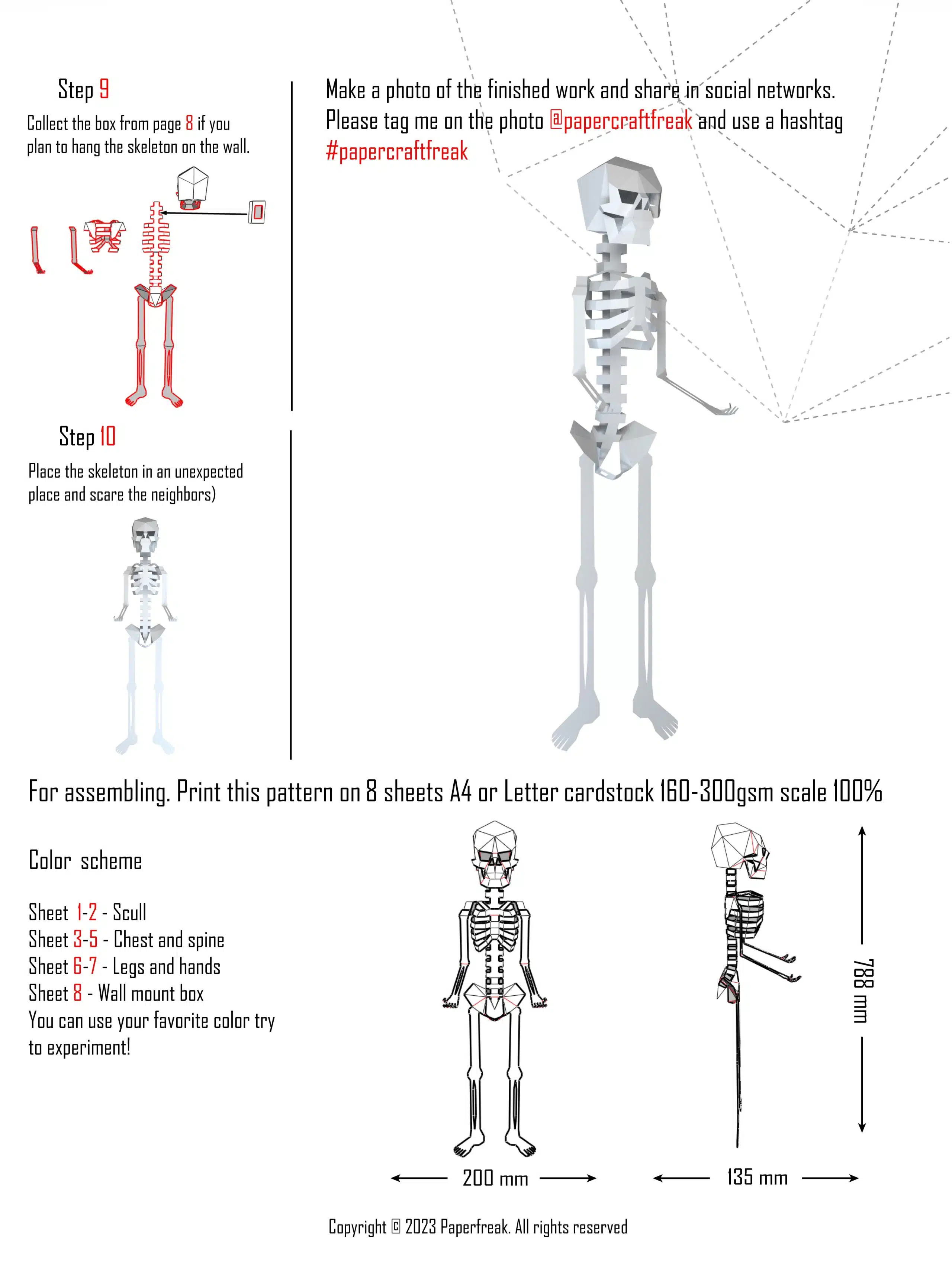 Breathe life into your creativity, piece by piece, as you assemble this eerie yet fascinating skeleton! Whether you’re setting up a hauntingly festive scene at home or sharing a fun crafting moment with family, this papercraft is the perfect activity. So why wait? Order your kit today and proudly showcase your one-of-a-kind creation to friends and family!