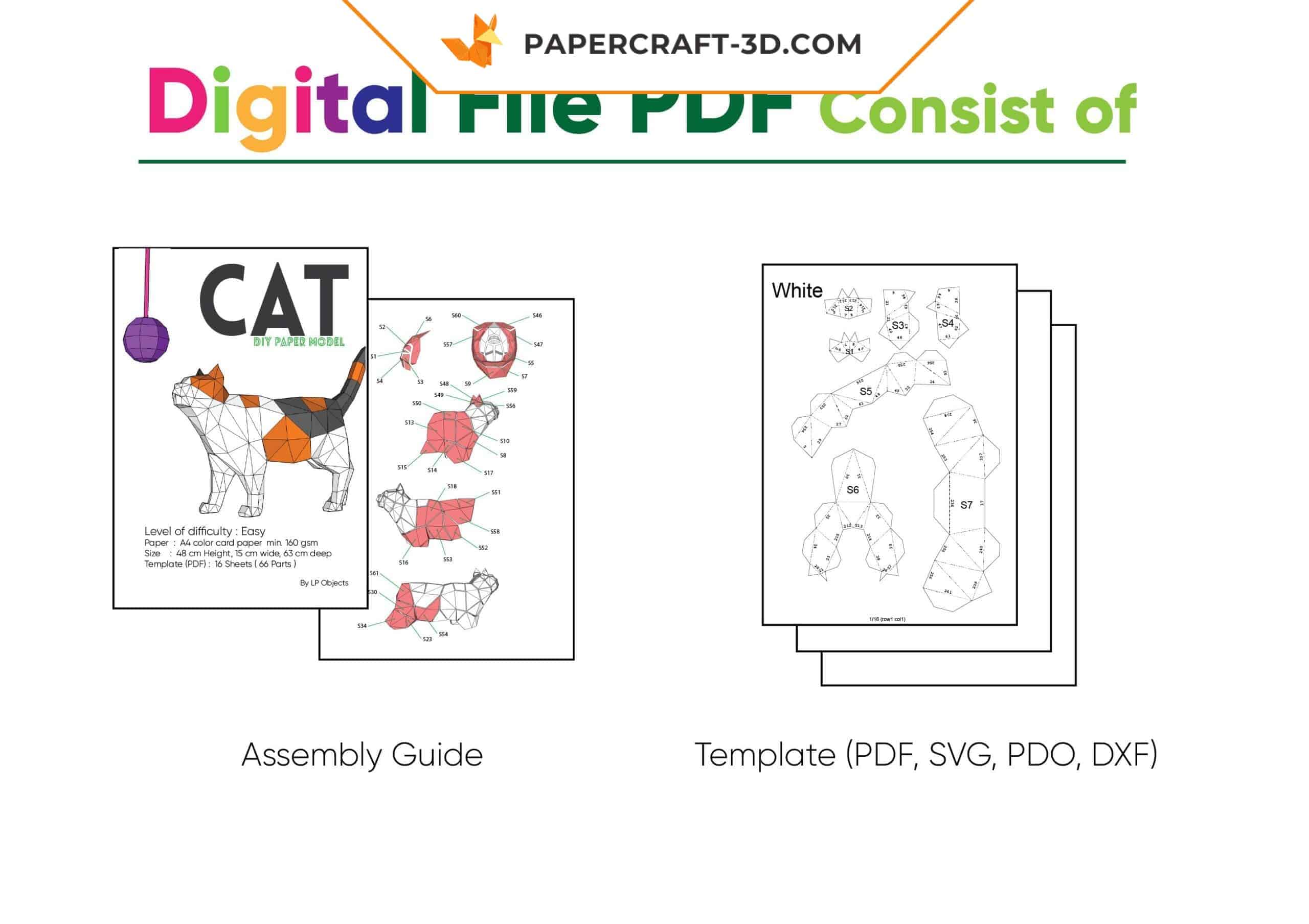 Our 3D origami cat papercraft is available in two formats: the digital kit (a downloadable PDF) and the complete box with all necessary accessories included. Whichever format you choose, you’re guaranteed an enriching creative experience that will leave you proud of your masterpiece.
