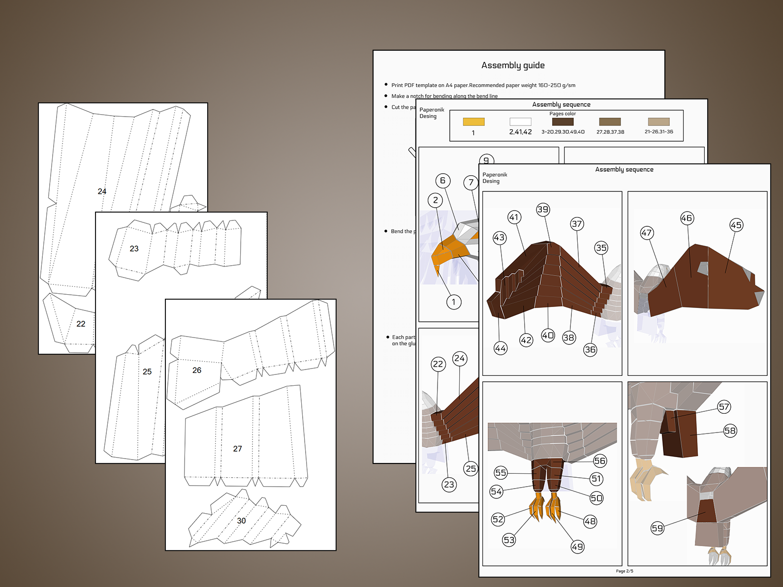The 3D origami eagle papercraft is available in two convenient formats to suit your preferences. Opt for the instant-download digital kit or indulge in the complete box set, which includes pre-printed sheets and all essential tools. Choose your ideal format and embark on a creative journey that’s as enjoyable as it is rewarding.
