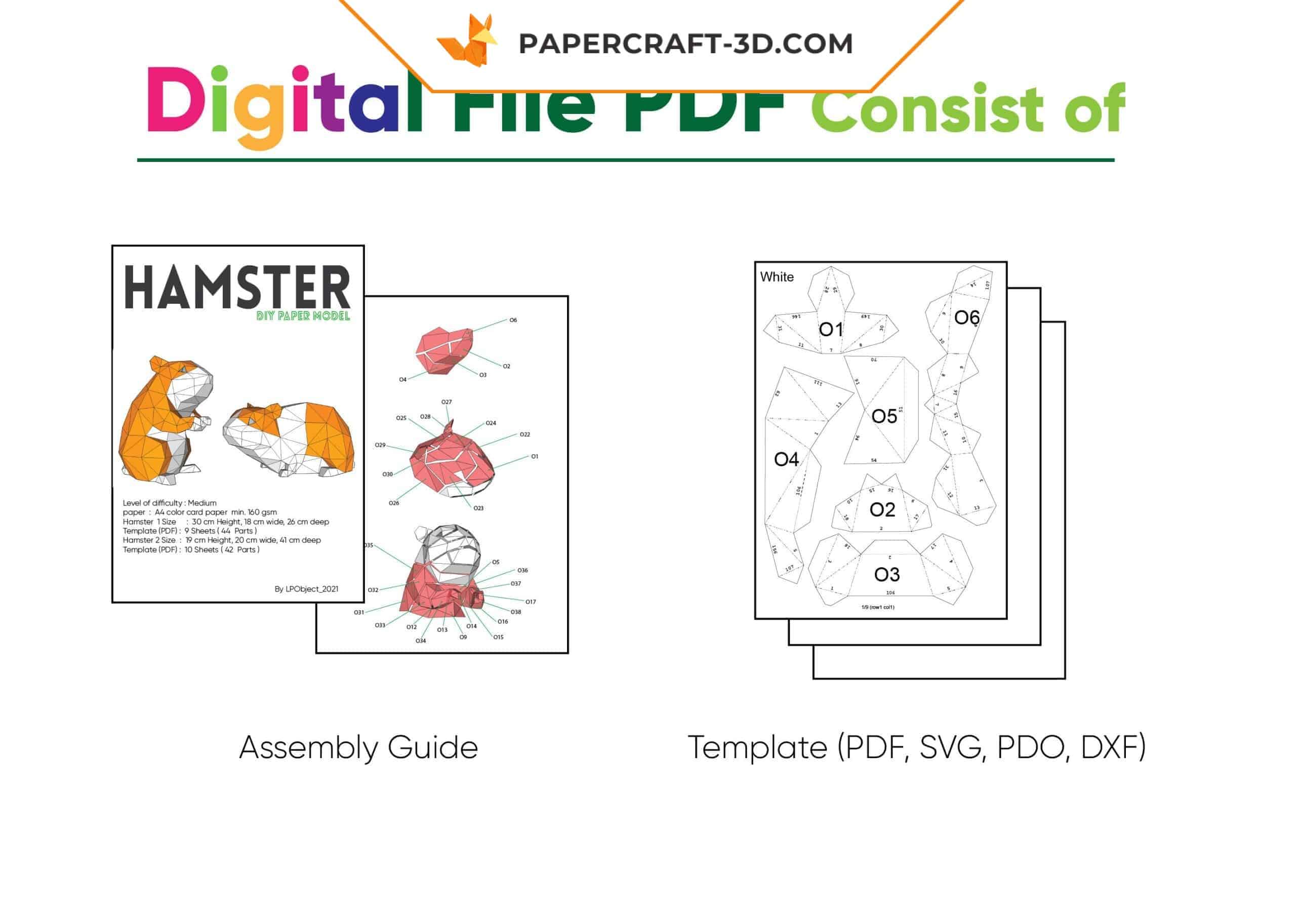 Picture yourself in a world where adorable hamsters come to life at your fingertips. With our 3D origami hamster papercraft, you have the chance to create two unique figurines: one to adorn your walls and another to brighten up your tables. Comprising 24 paper pieces, this model offers an exciting creative challenge, perfect for craft enthusiasts and pop culture fans. You can explore other similar models in our dedicated 3D origami animals collection.