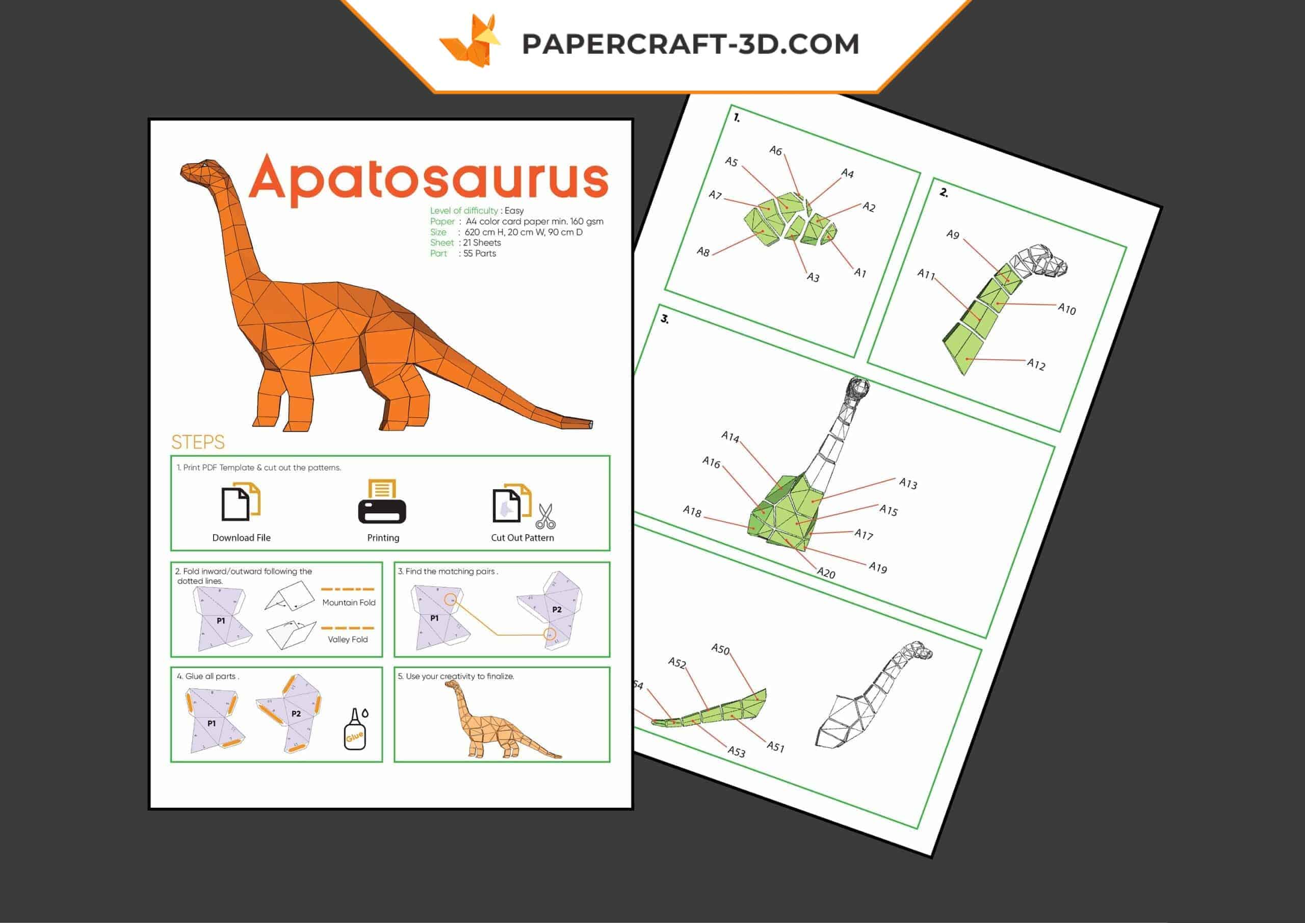 Don’t wait any longer to dive into this unique and rewarding experience. Whether you’re a craft enthusiast, a passionate decorator, or a parent looking for an educational activity for your children, the 3D origami apatosaurus papercraft is perfect for you. Add it to your collection now and let your creativity soar!