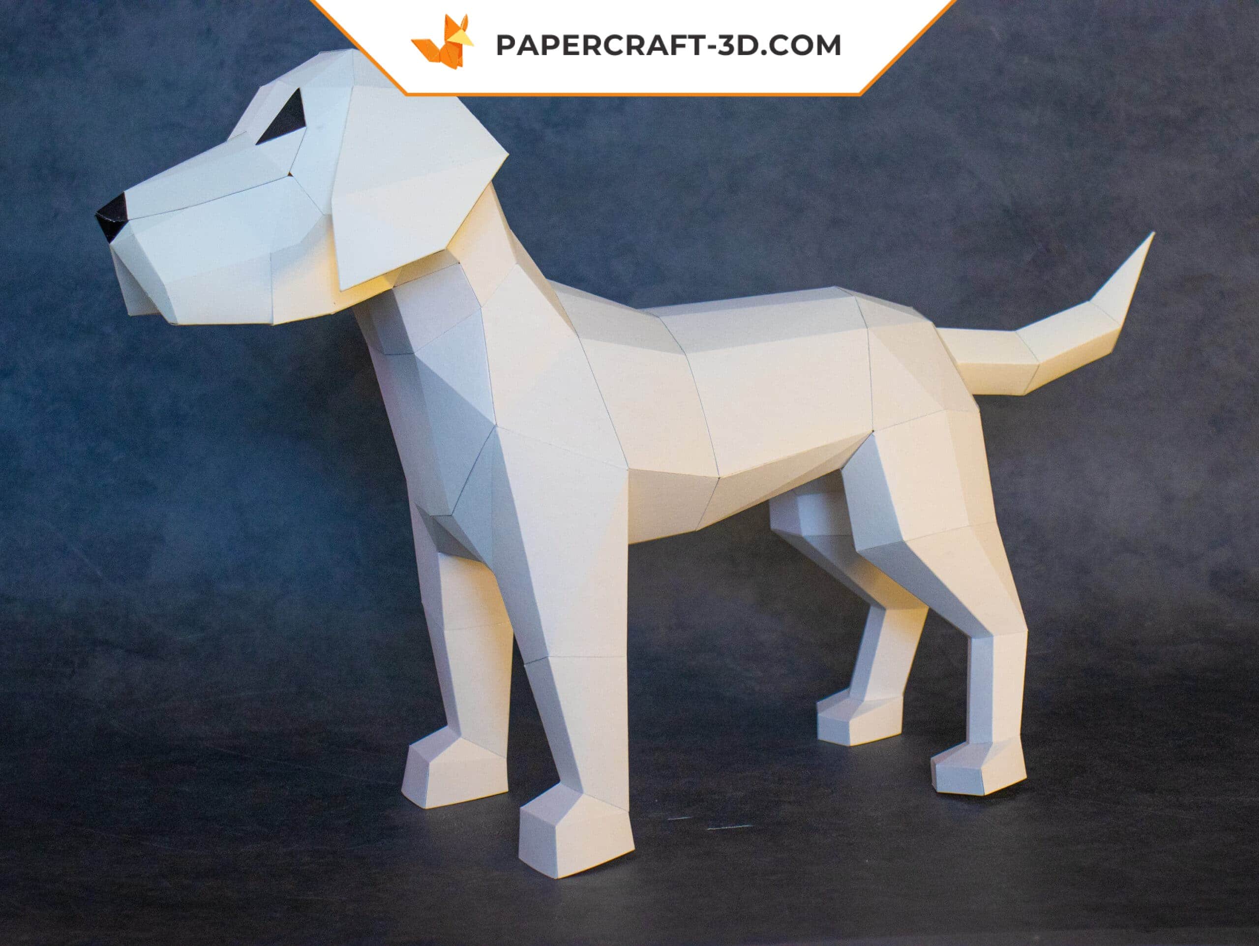 The 3D origami dog papercraft is available in two formats: an instantly downloadable PDF digital kit or a complete box containing printed sheets and all necessary accessories (paper knife, glue, steel ruler, and folder). Choose the format that suits you best to create this beautiful decoration.
