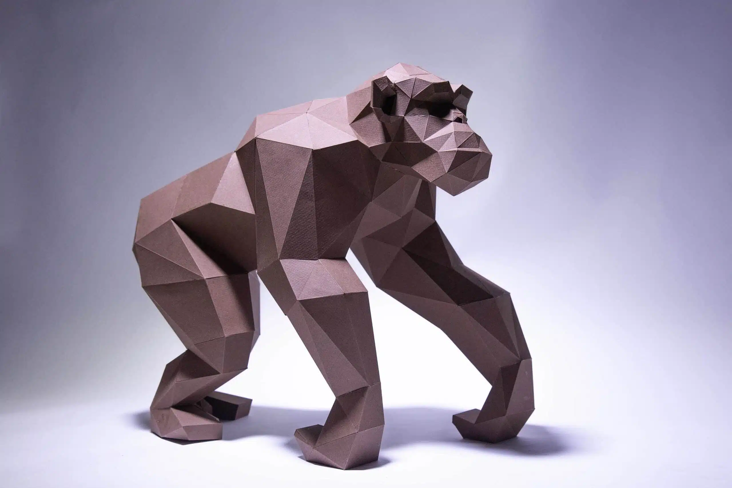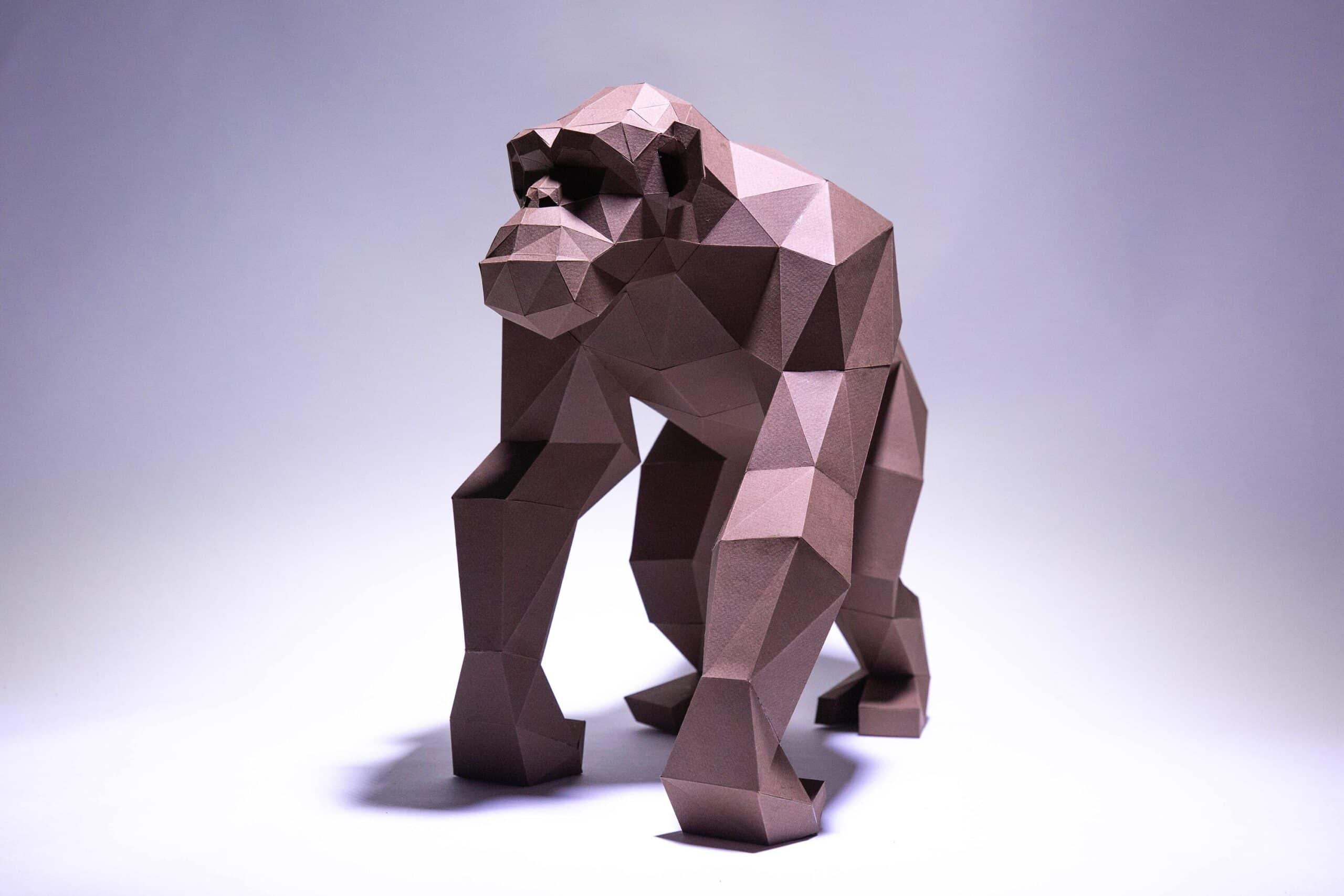 3D origami chimpanzee papercraft: available in digital kit or complete box