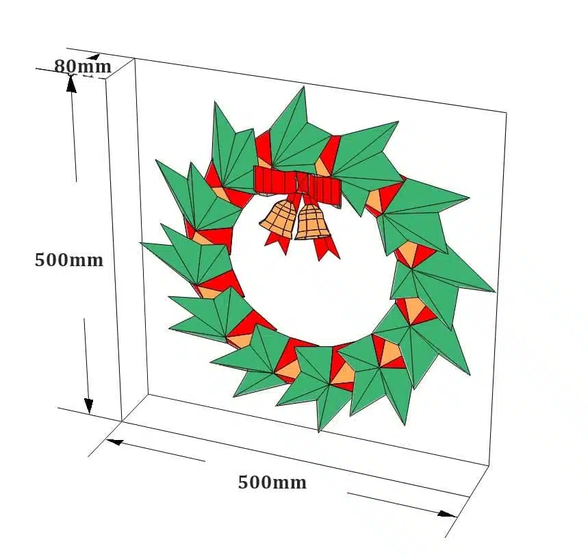 Technical specifications of the 3D origami Christmas wreath papercraft