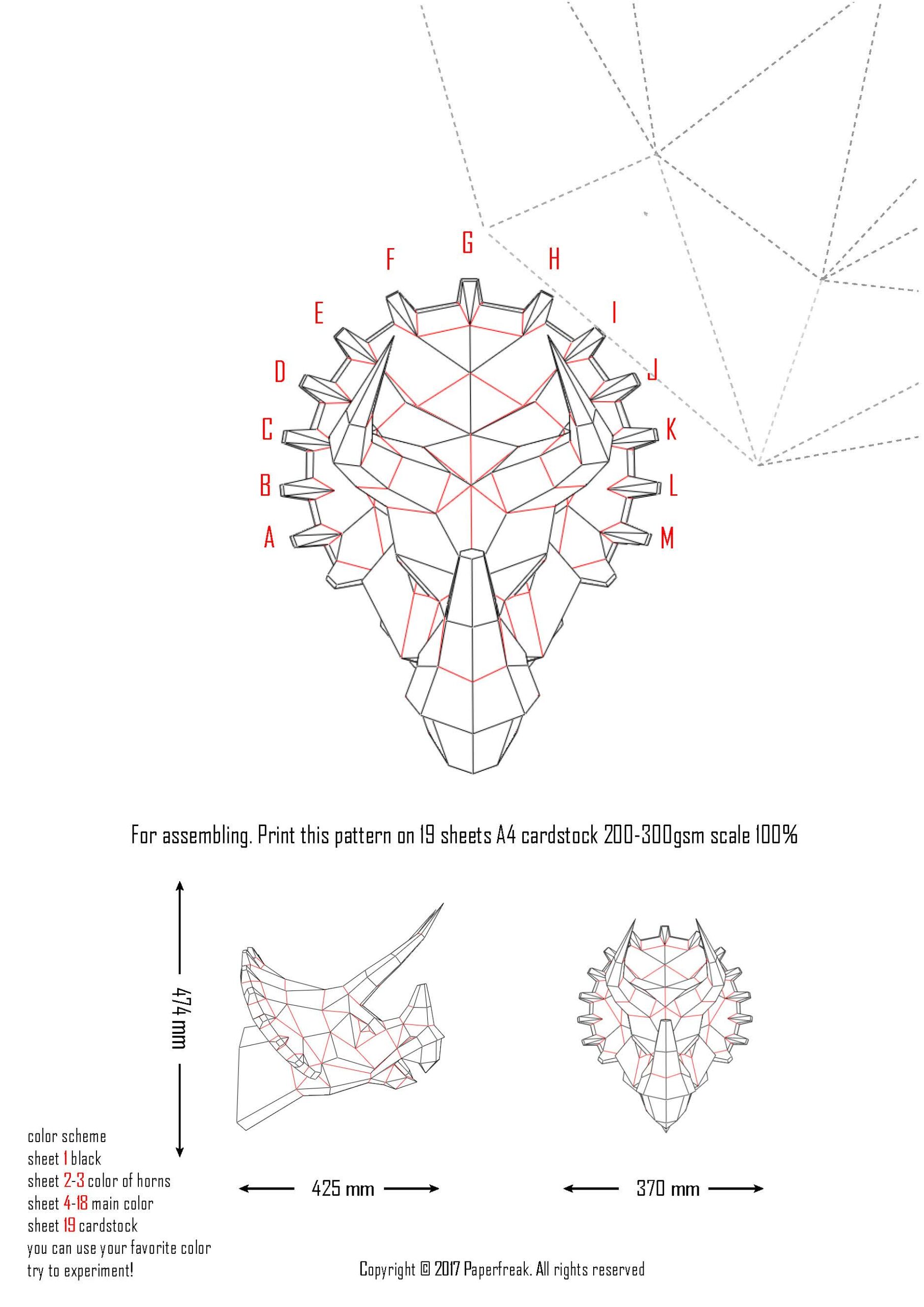 Technical characteristics of the triceratops dinosaur papercraft in origami