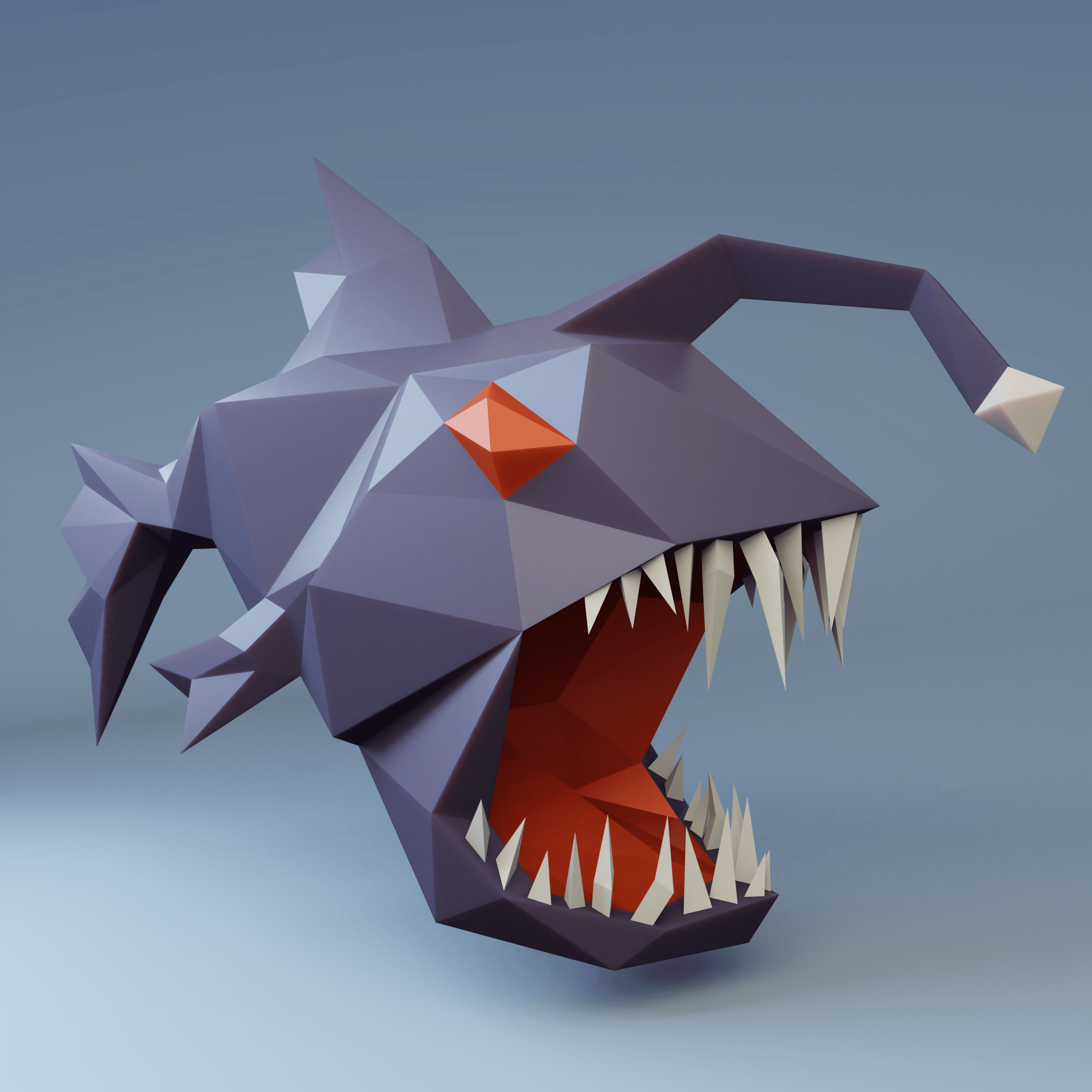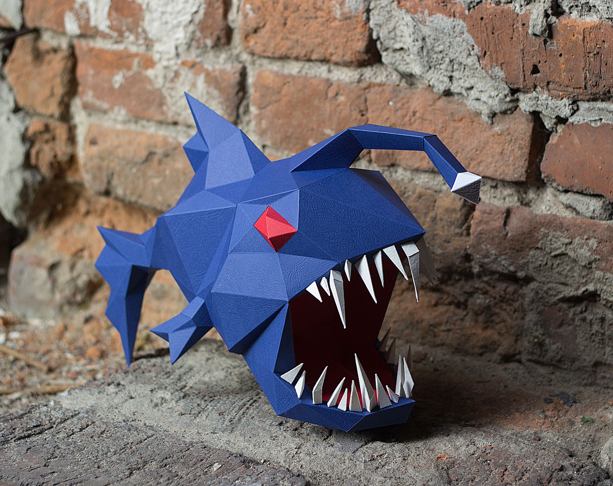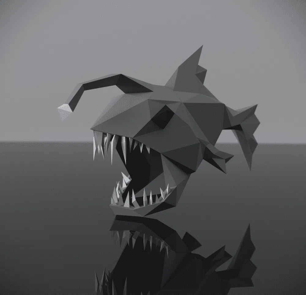 Digital papercraft kit or complete box: 3D origami lanternfish