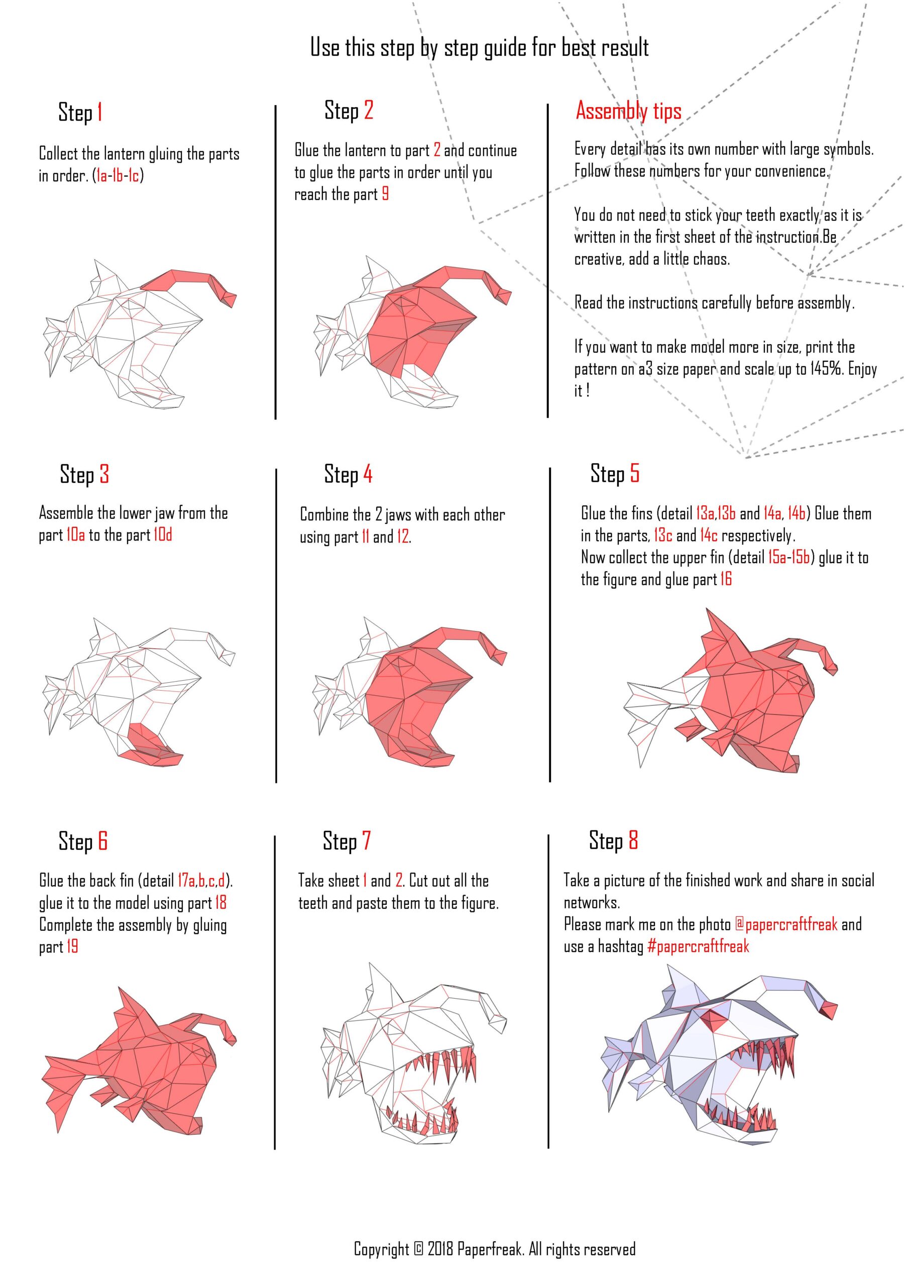 Whether you’re a beginner or an expert, this lanternfish papercraft offers a stimulating and rewarding challenge. Each piece is numbered, and the instructions are clear to facilitate assembly. Unleash your imagination and create a unique work of art that will amaze your loved ones. Ready to dive into this creative adventure?