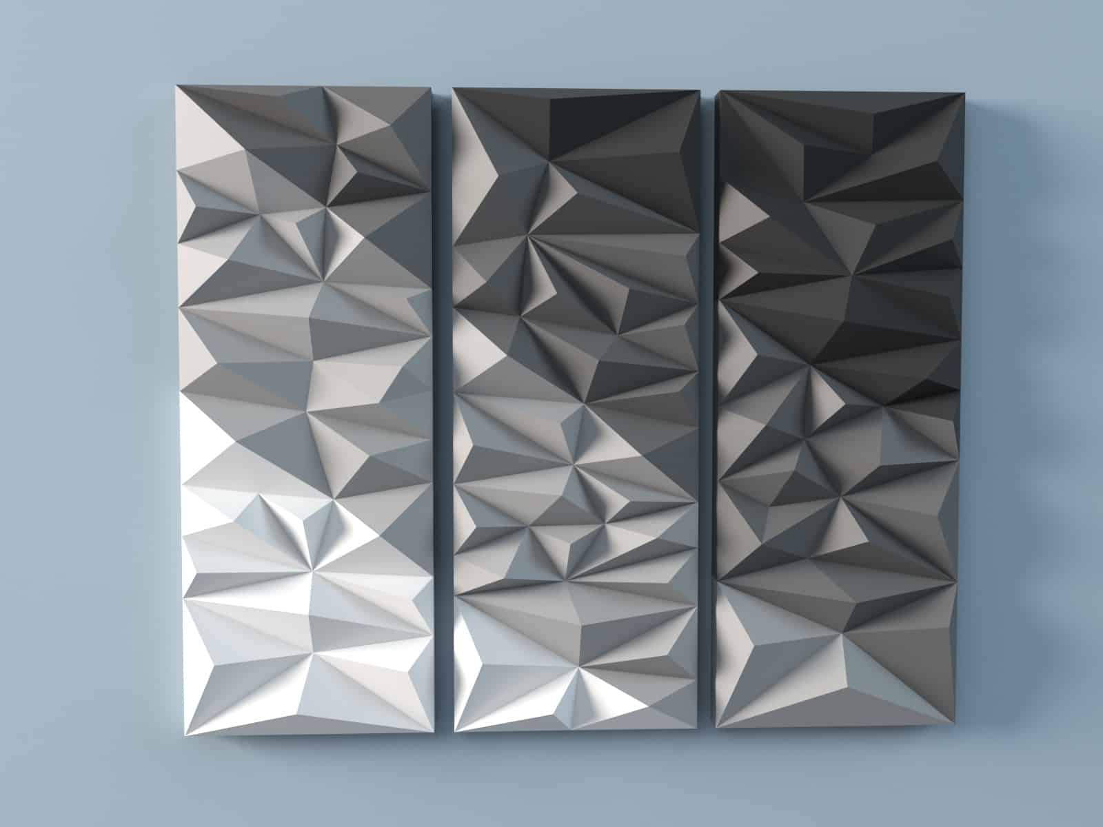 Geometric 3D origami papercraft wall triptych – modern elegance for your space