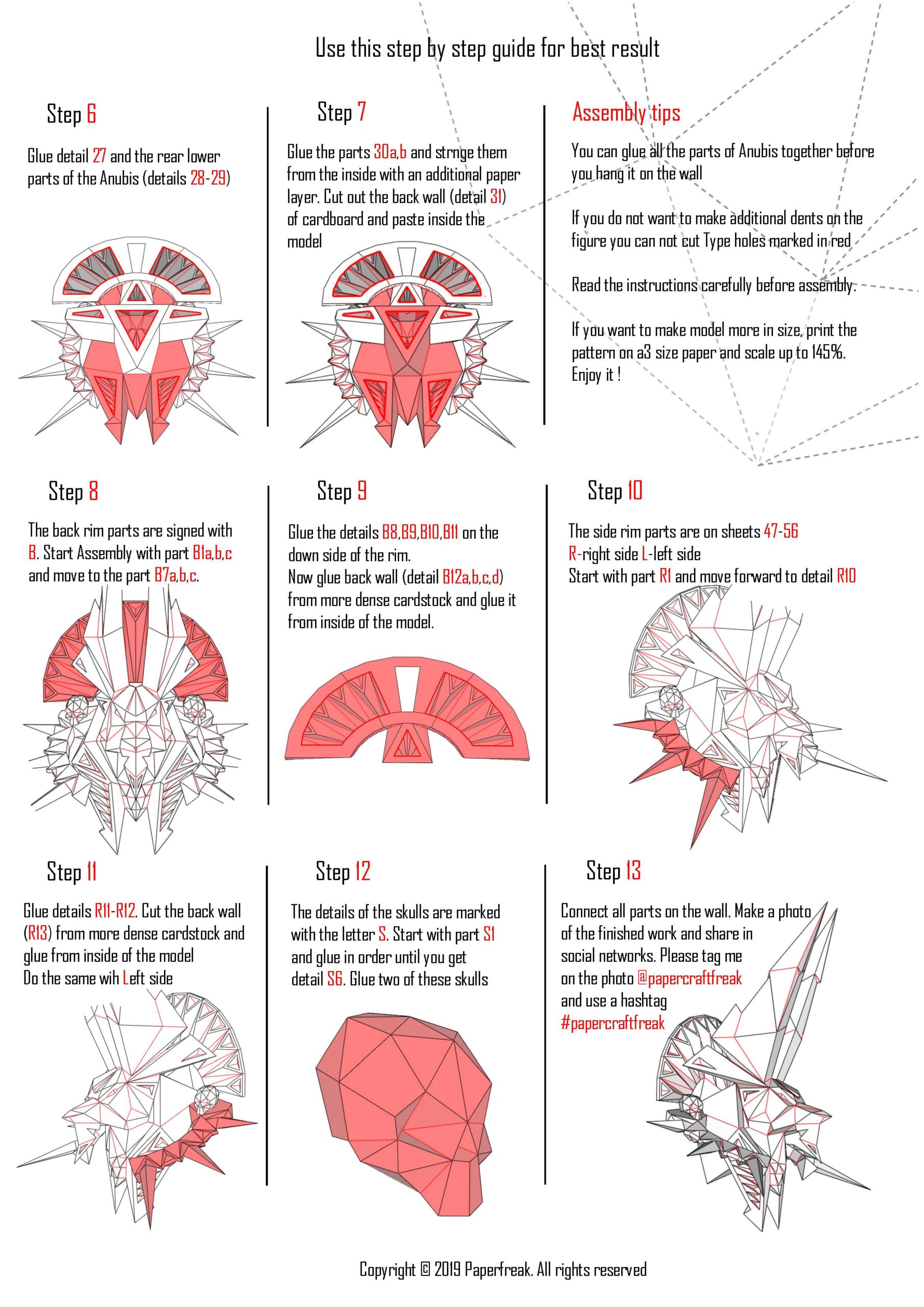Don’t miss the opportunity to craft a unique decorative piece with our Anubis head papercraft in 3D origami. Whether to enhance your interior or to offer an original DIY gift, this model is perfect for expressing your creativity. Order today and begin your journey into the art of papercraft!