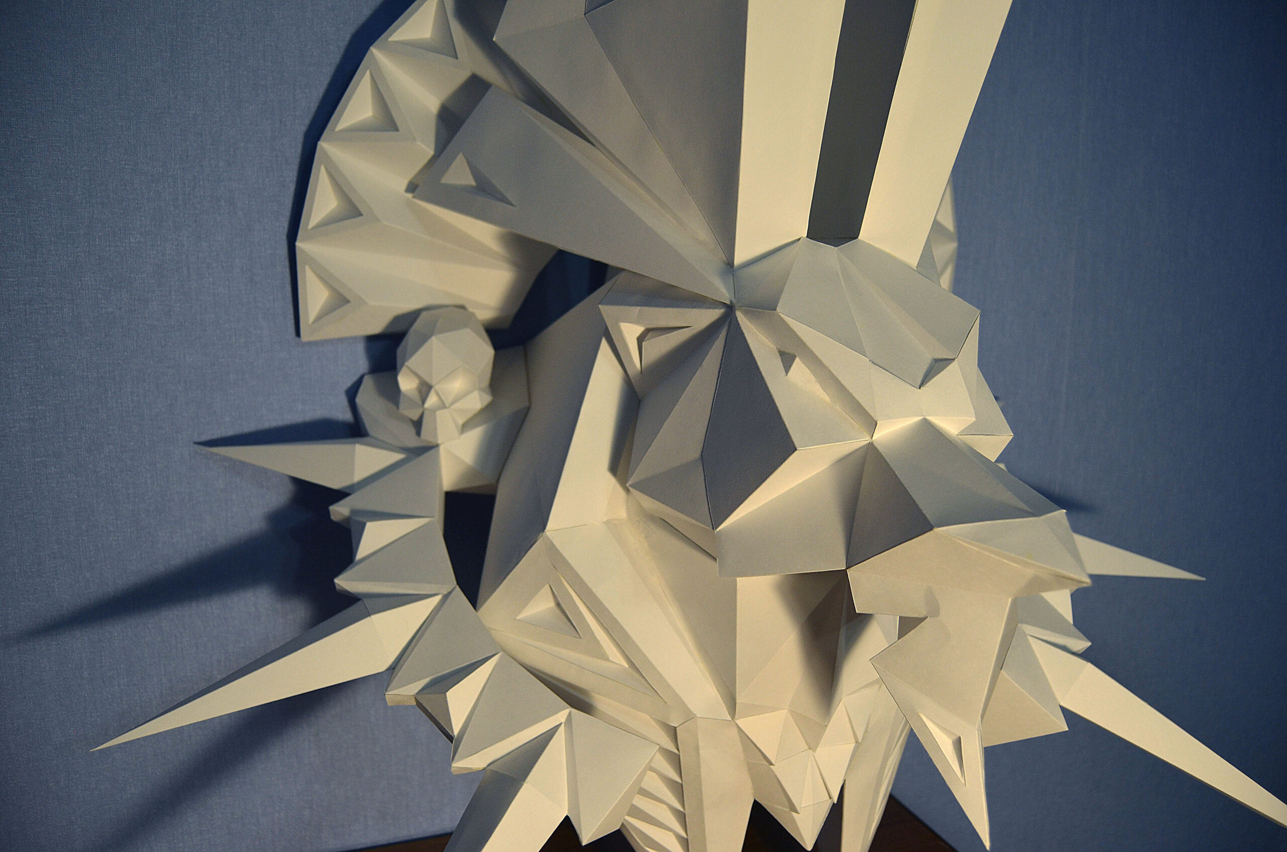 Step into the captivating world of ancient Egypt with our Anubis head papercraft in 3D origami. Picture yourself in your workshop, bringing to life this iconic figure, the Egyptian god of the dead. This low-poly model is a construction challenge designed for professionals, offering a spectacular DIY decoration for any space. Transform your interior into a mystical sanctuary with this unique papercraft. Explore our complete collection of 3D wall origami to discover more fascinating creations.