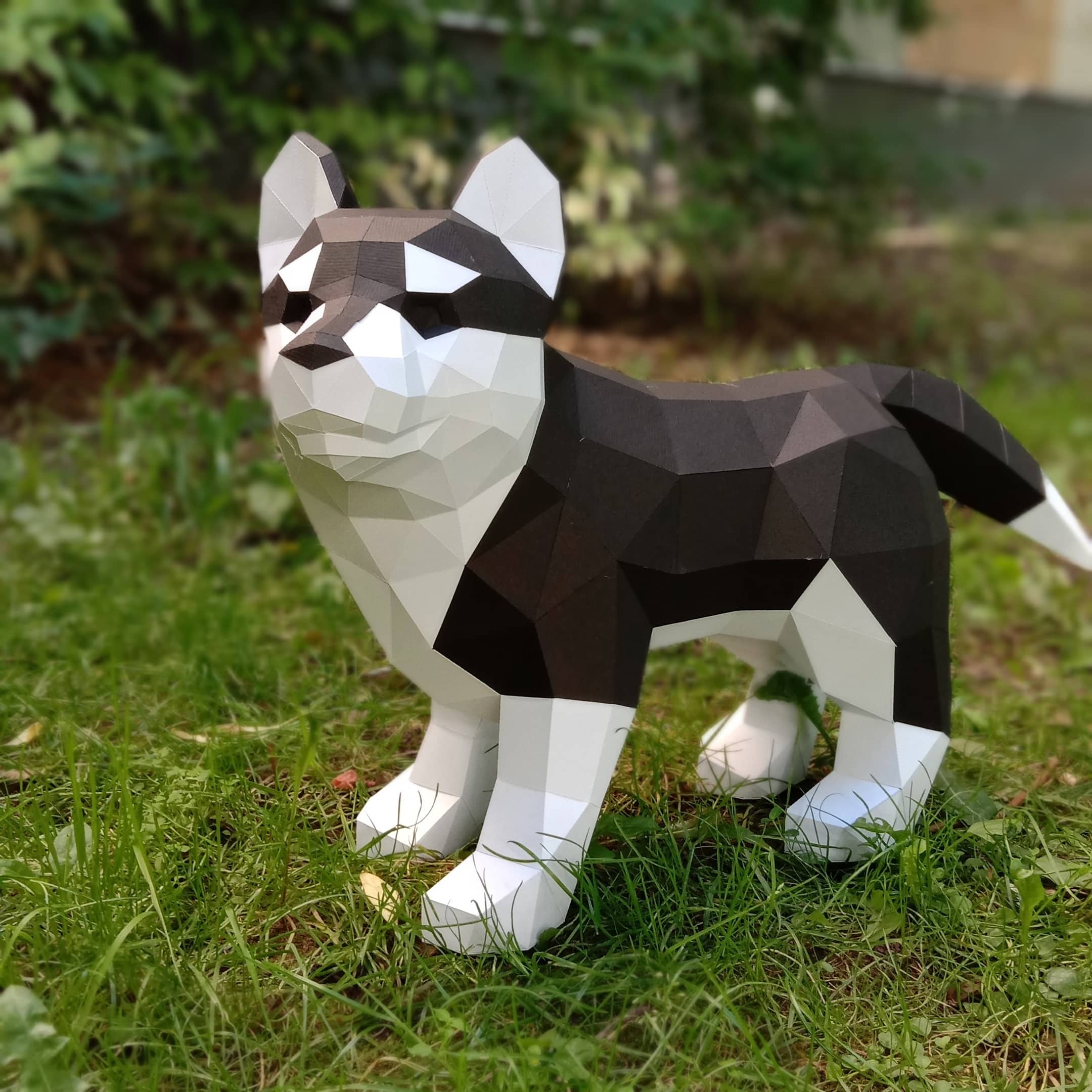 Delve into the world of papercraft with the 3D Husky Puppy origami