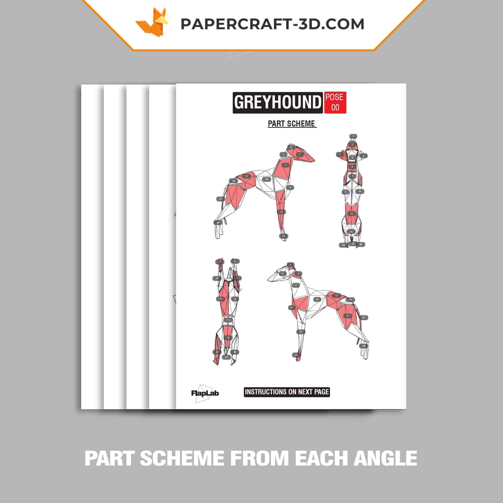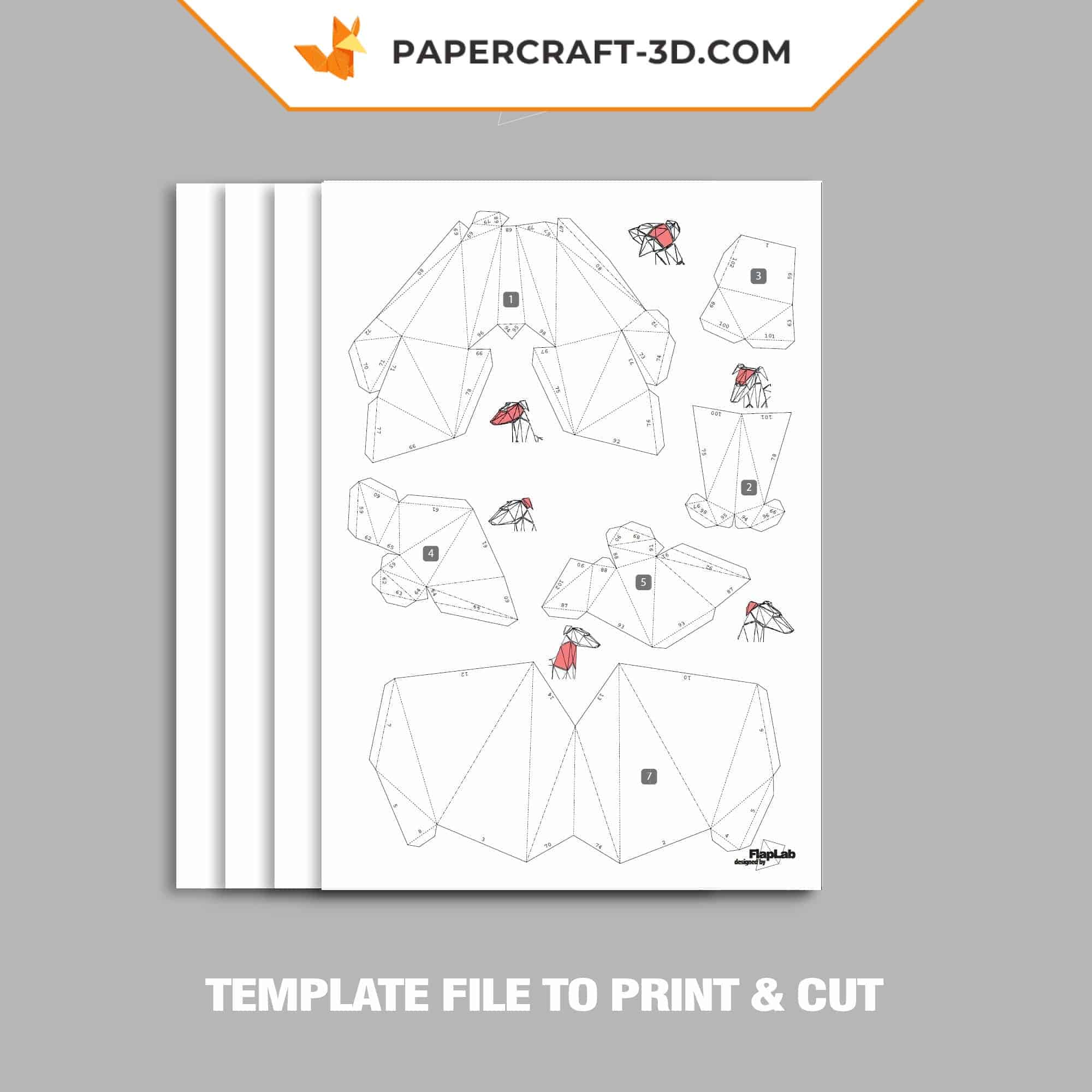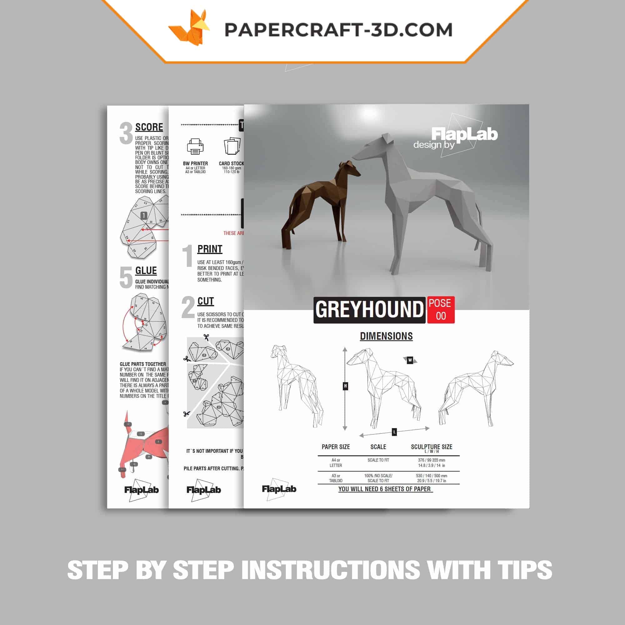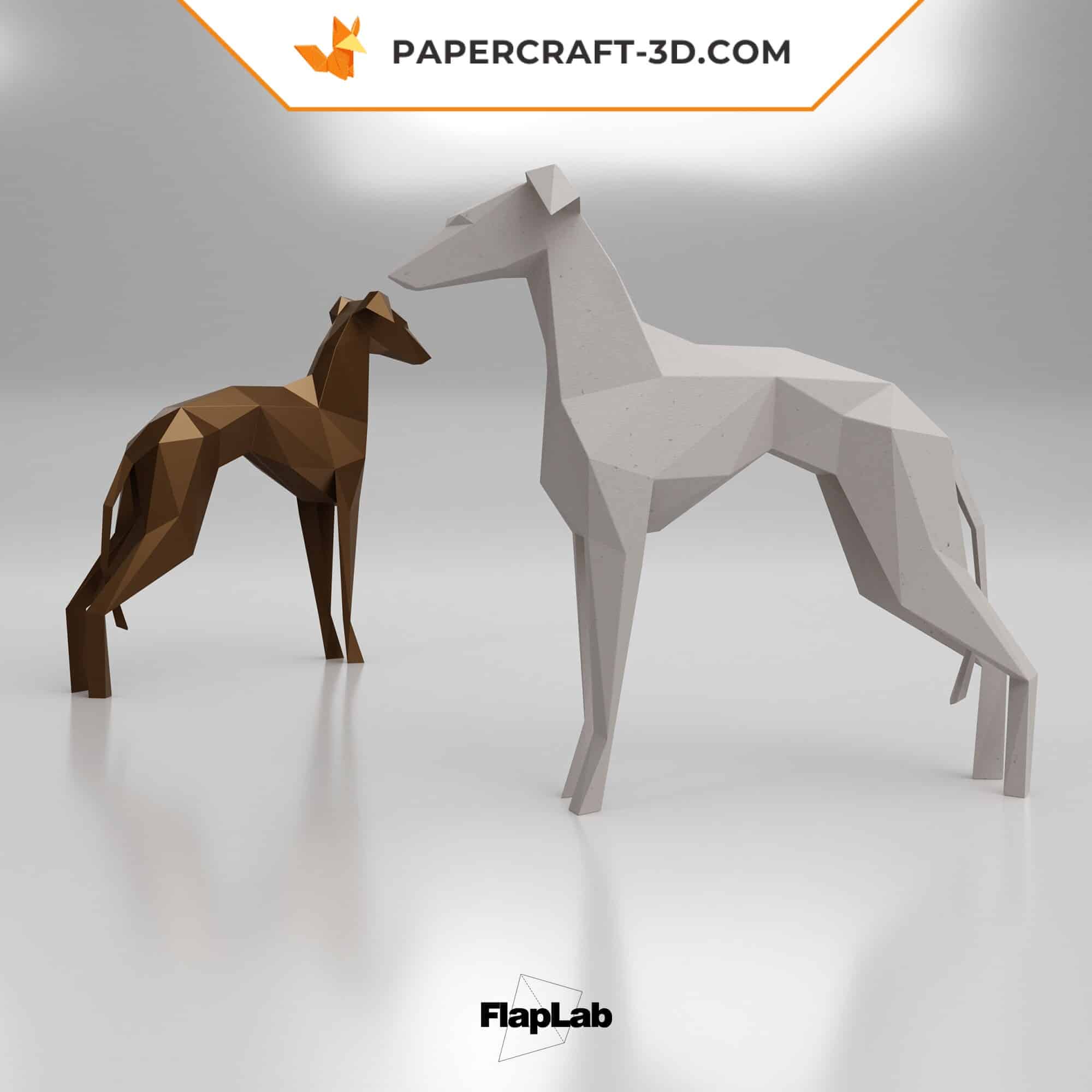 3D origami Italian greyhound papercraft: digital kit or complete box