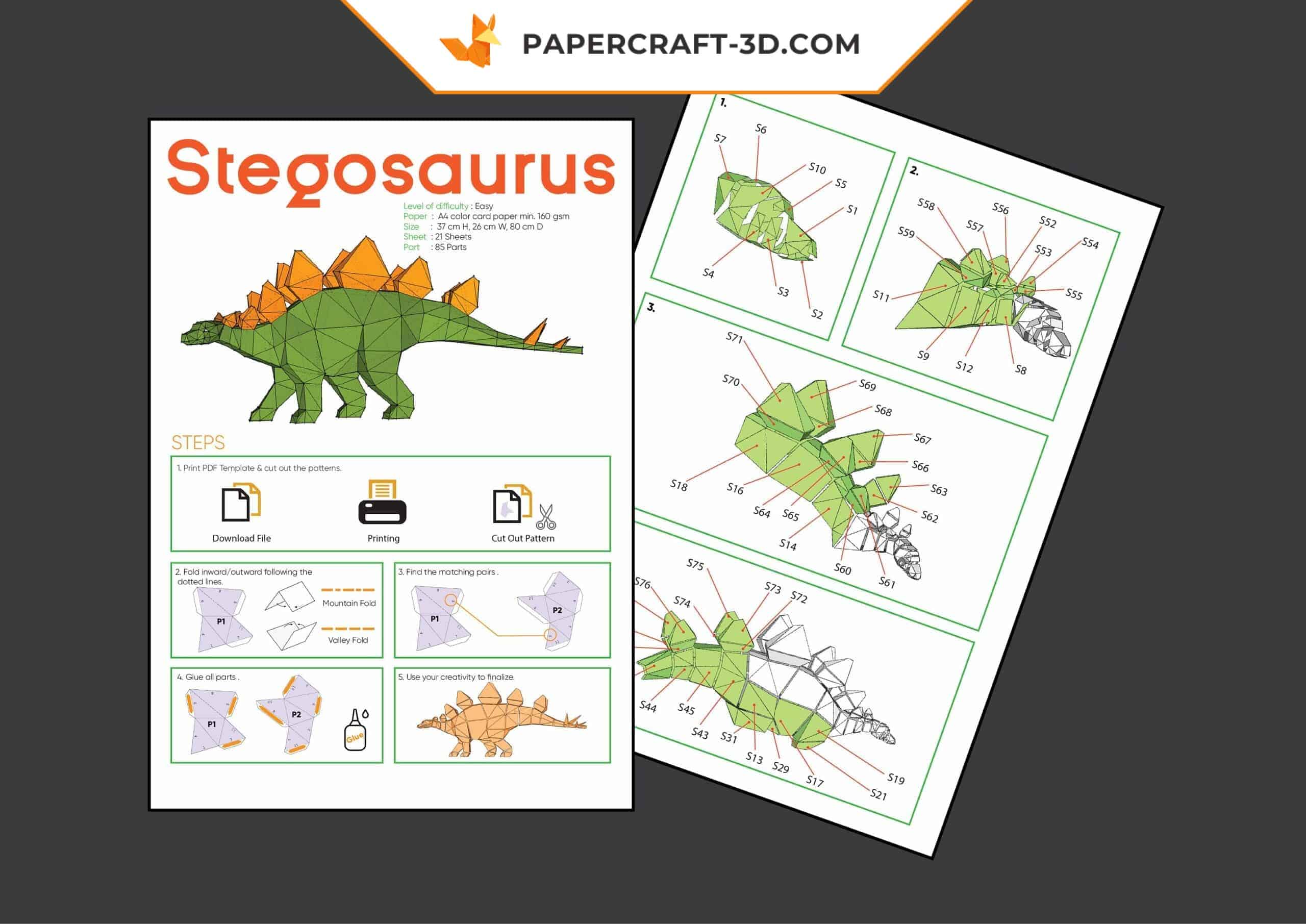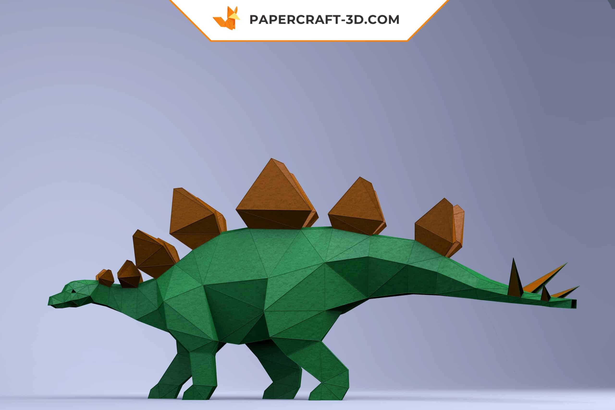 Stegosaurus dinosaur papercraft in 3D origami: digital kit or complete box