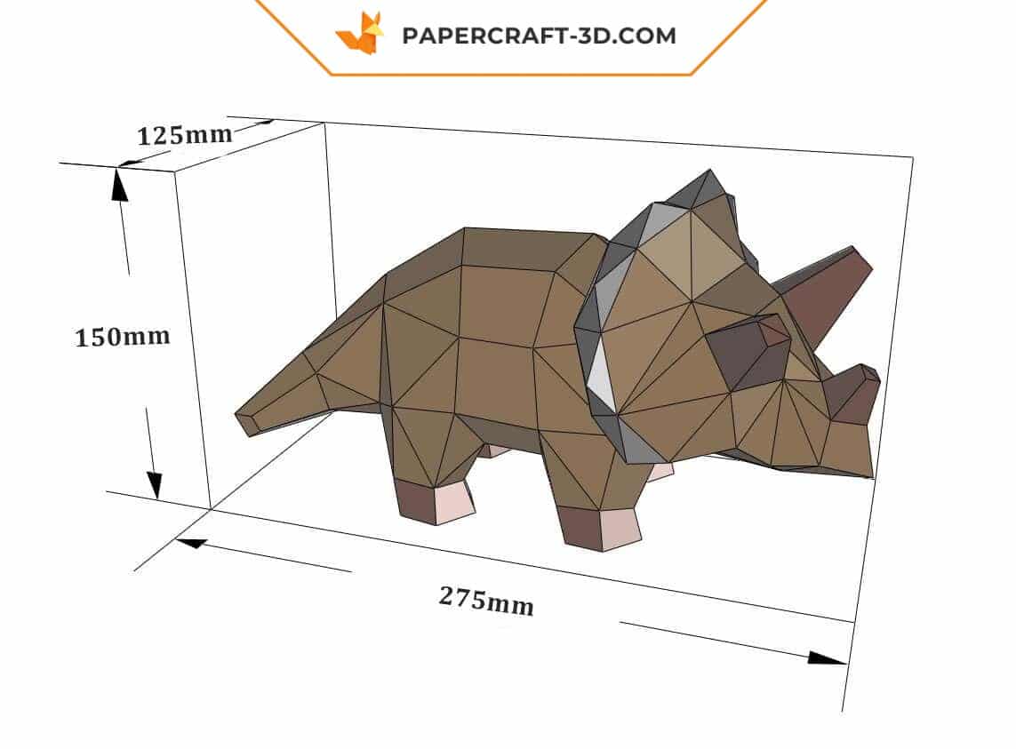 Technical specifications of the 3D origami triceratops papercraft