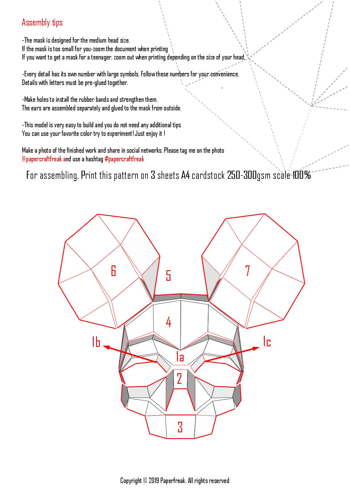 Technical details of the 3D papercraft mouse skull mask for Halloween
