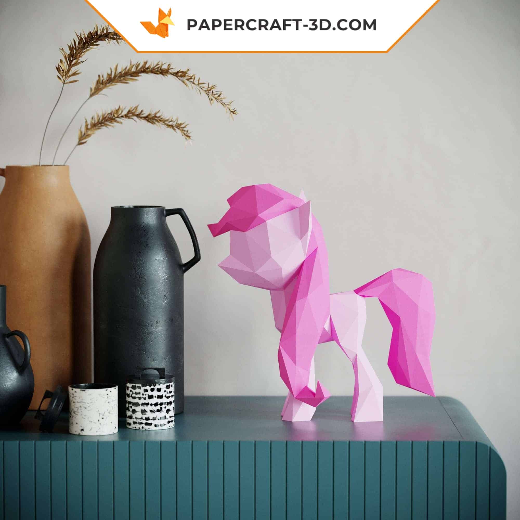 Digital papercraft kit or complete box: pink pony in 3D origami